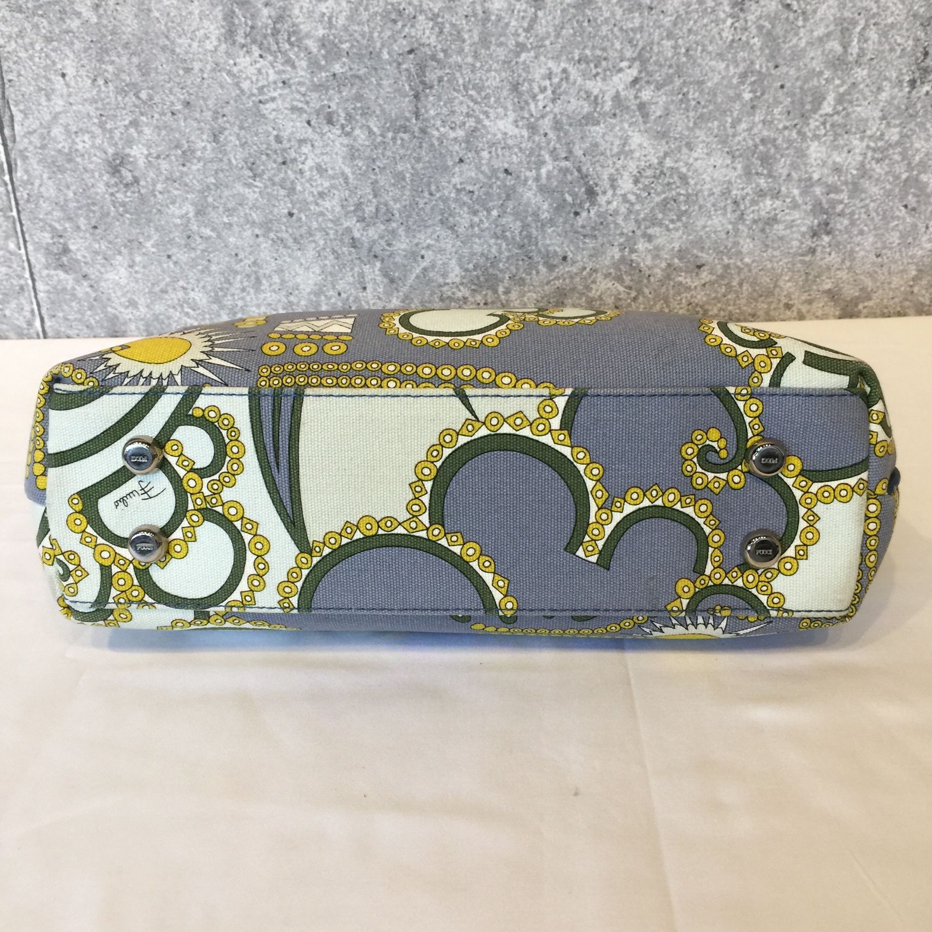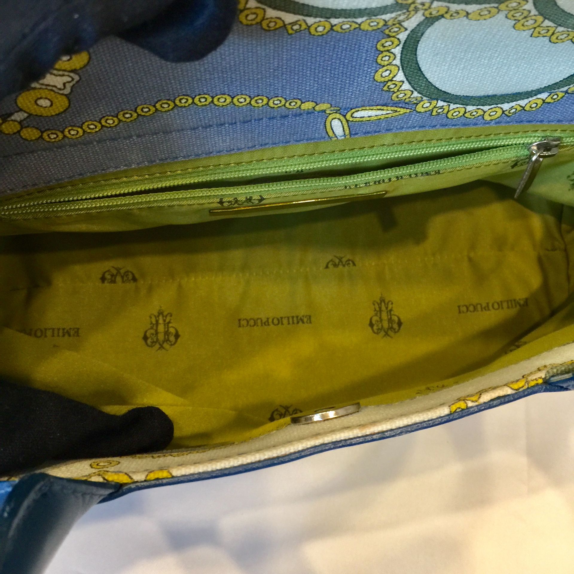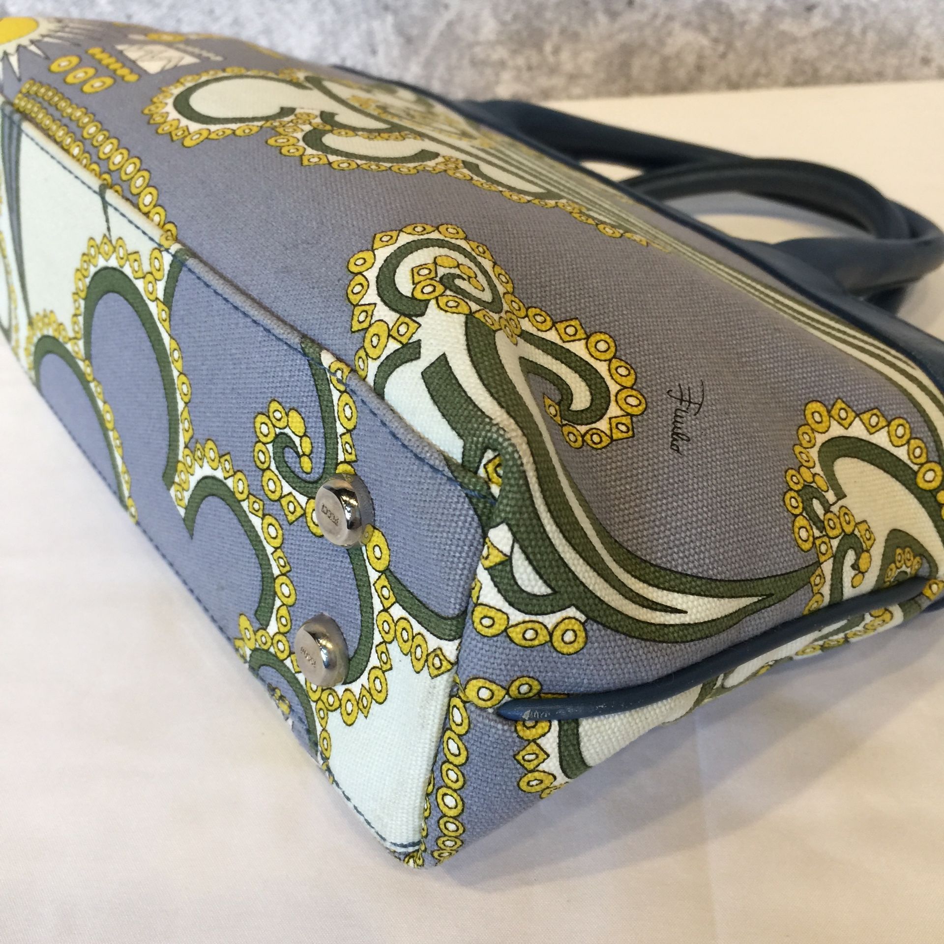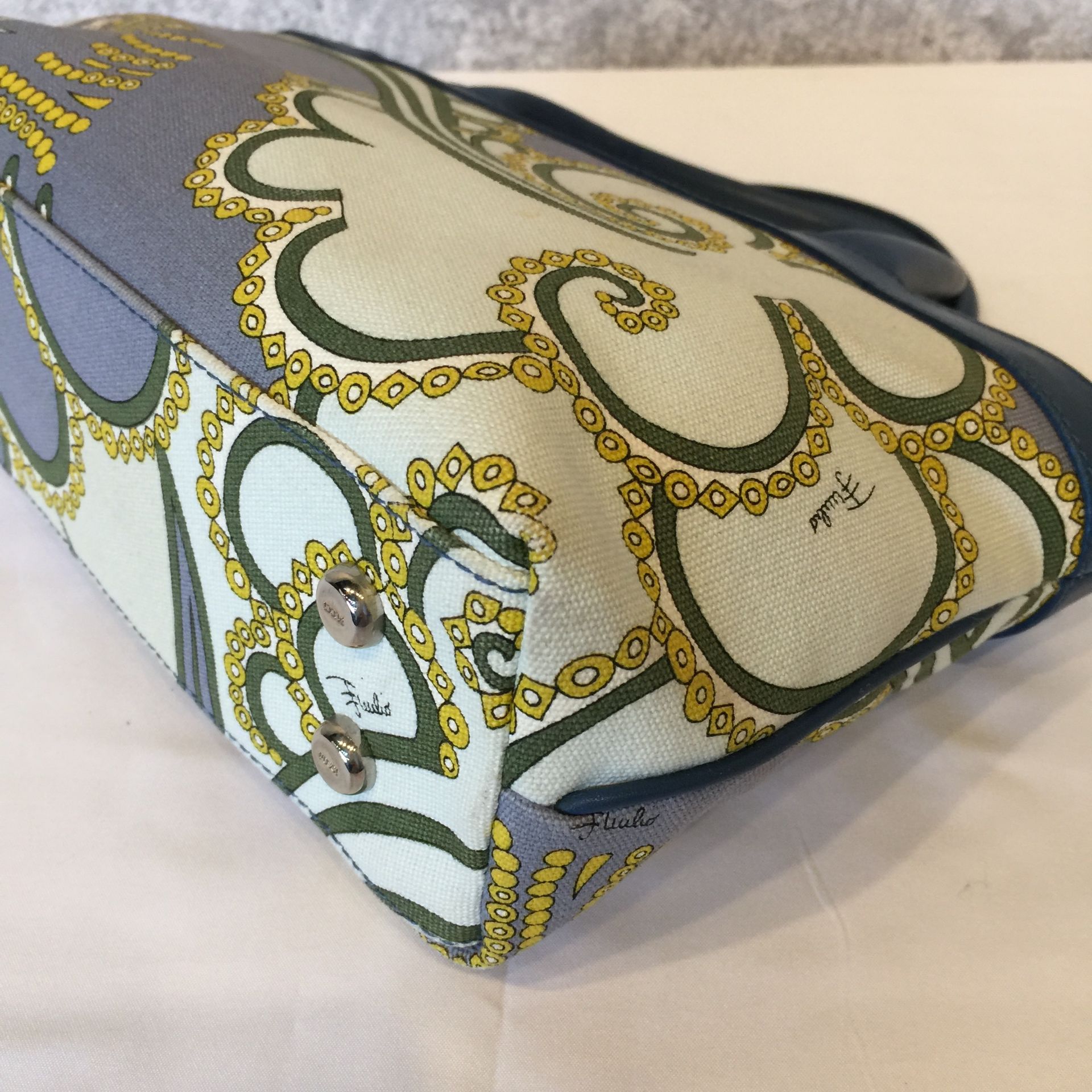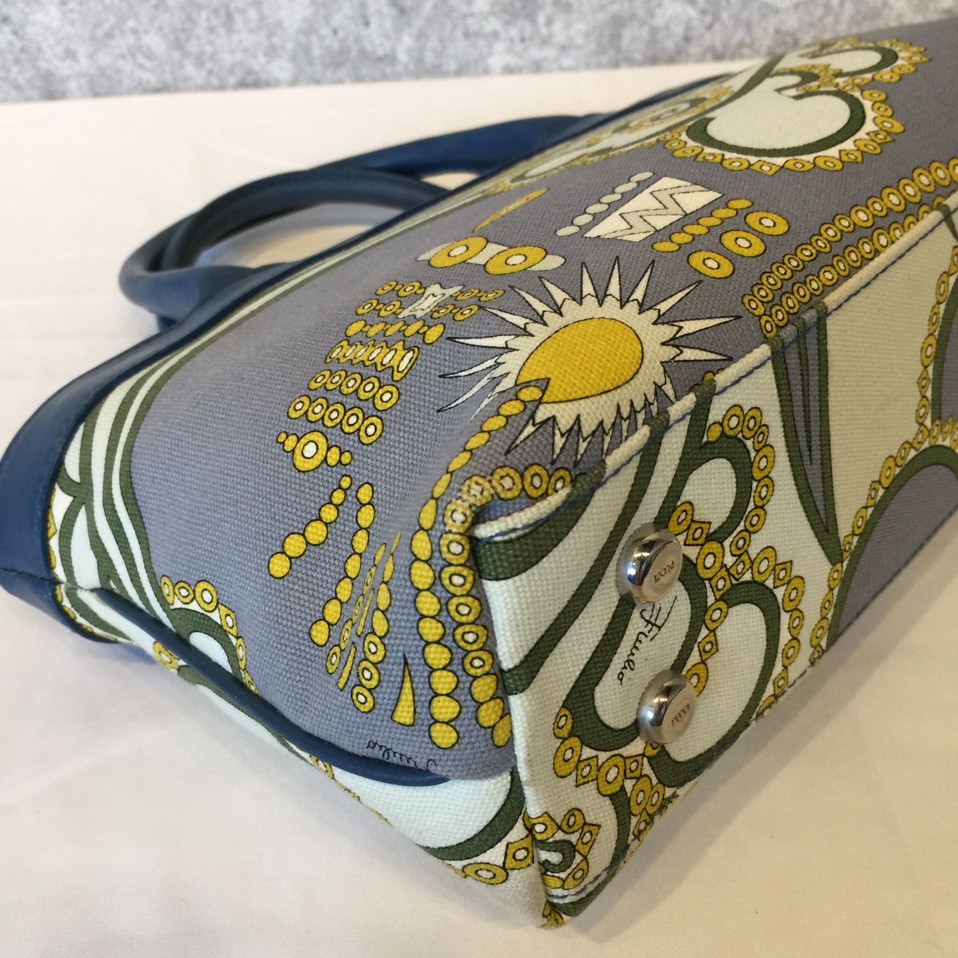 【哈極品】二美手品《EMILIO PUCCI 彩繪 布面拼藍色皮革 手提包》