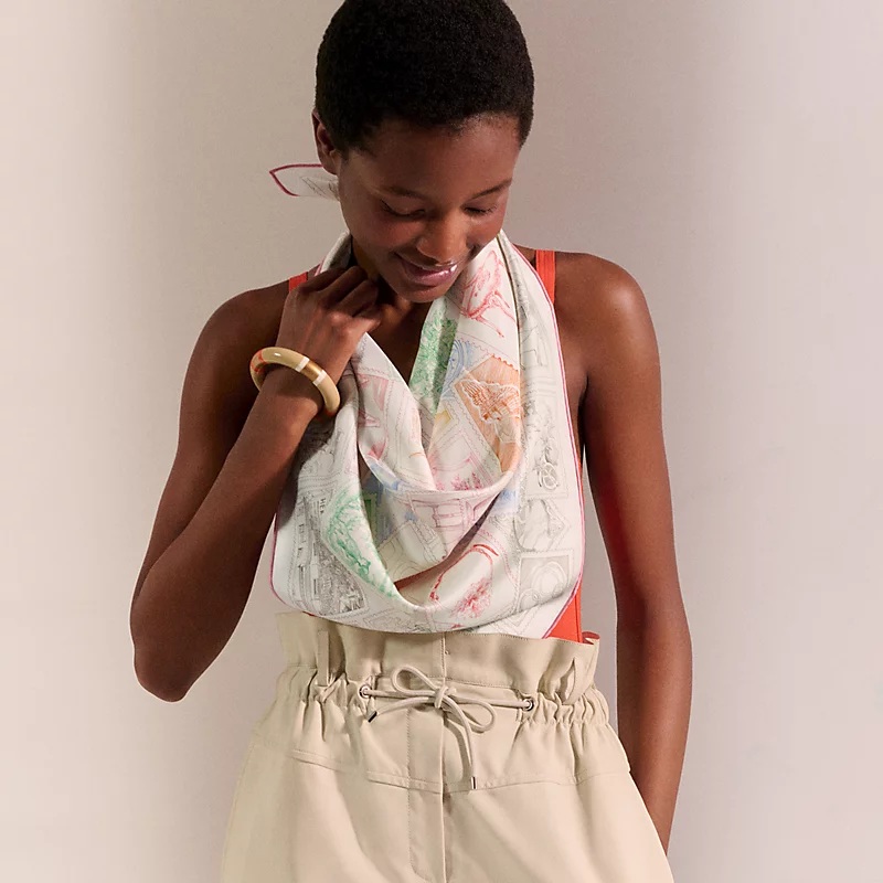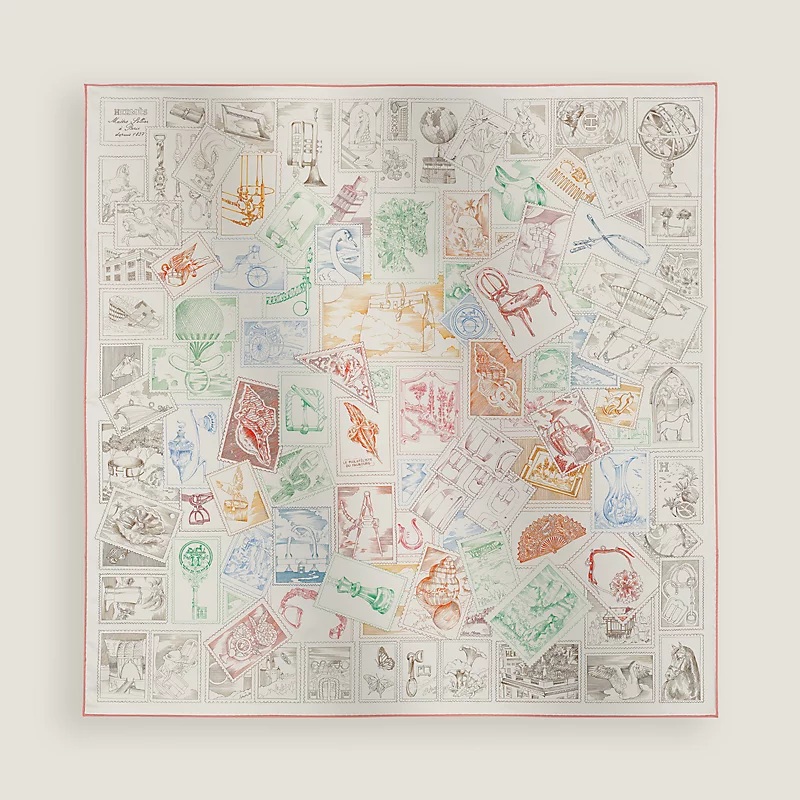 Hermes Le Philateliste du Faubourg 90方巾 福寶集郵家(白)