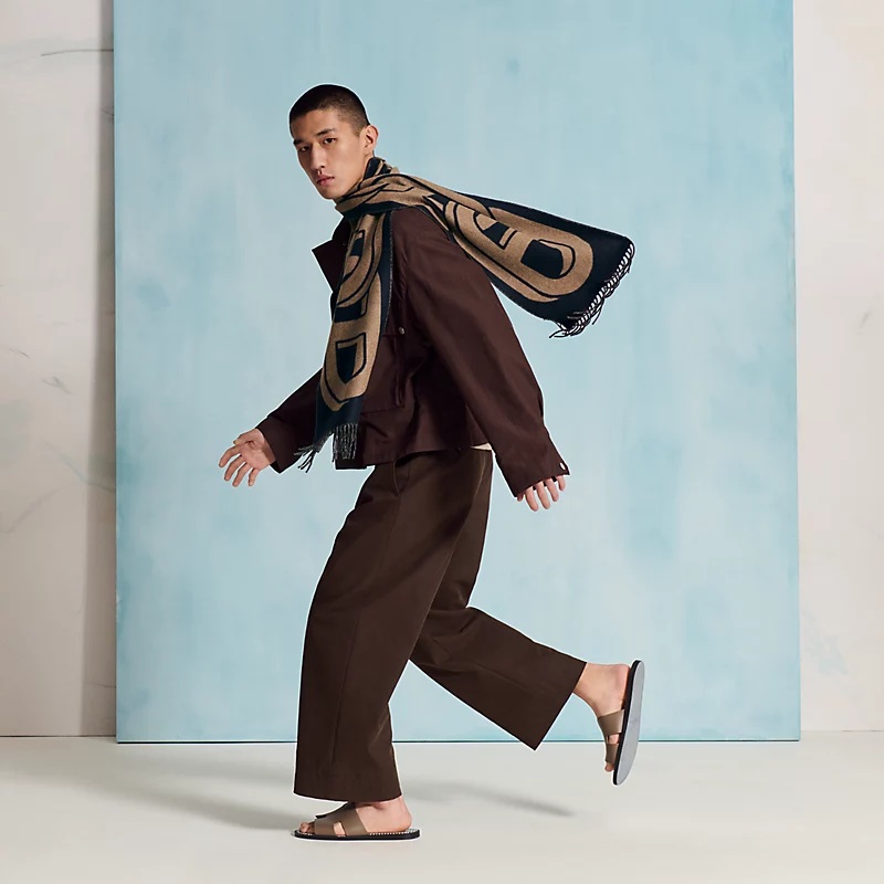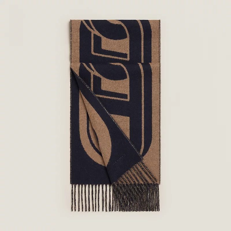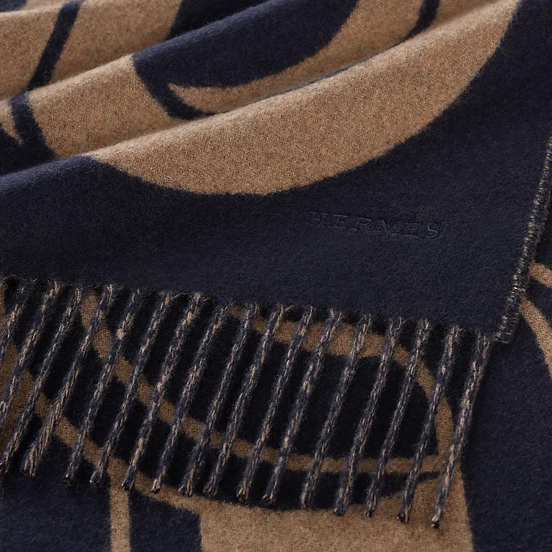 Hermes Maillons TGM 海軍藍x栗子色豬鼻羊絨圍巾