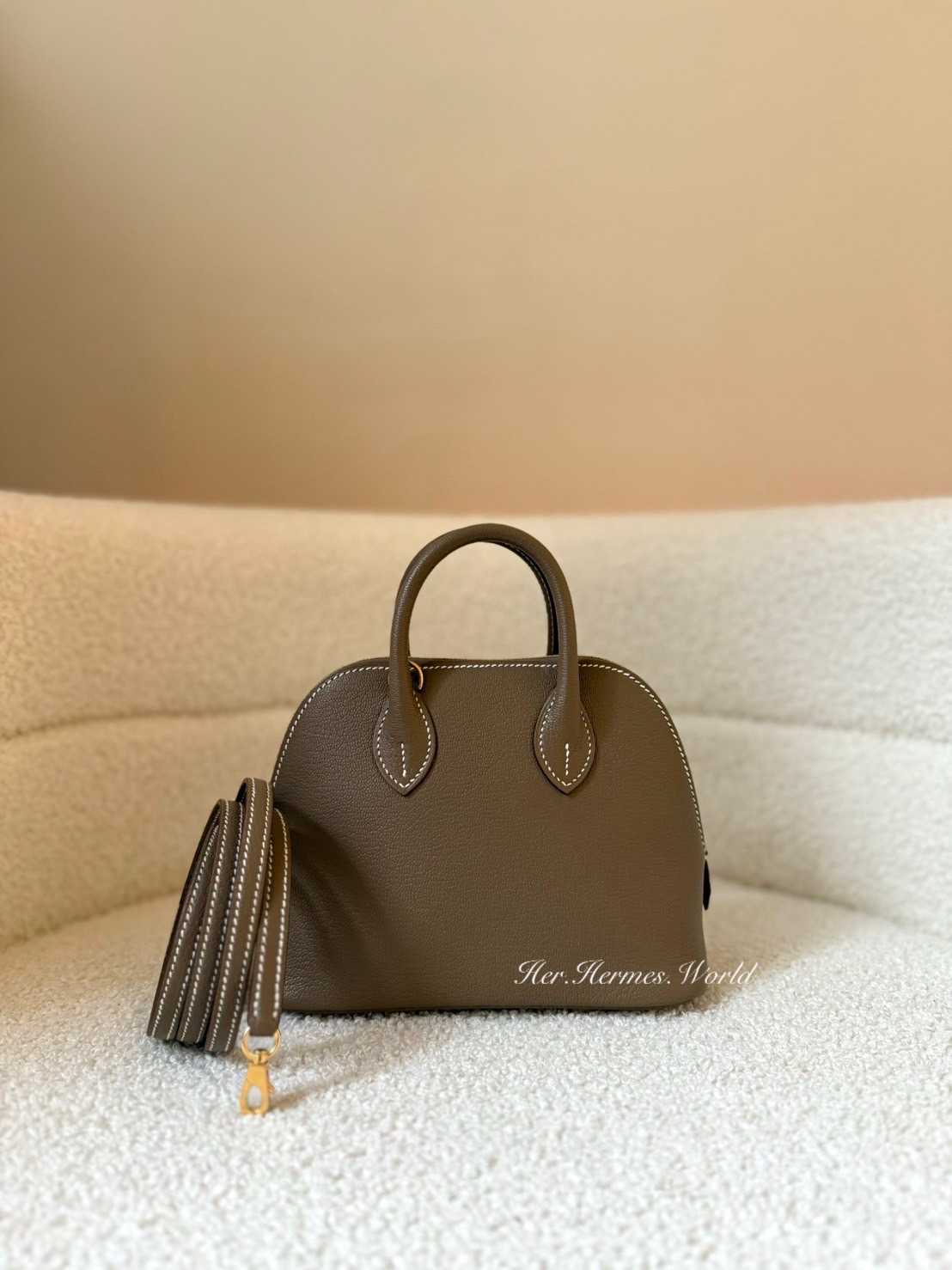 Hermes Mini Bolide 象灰金山羊皮/W刻