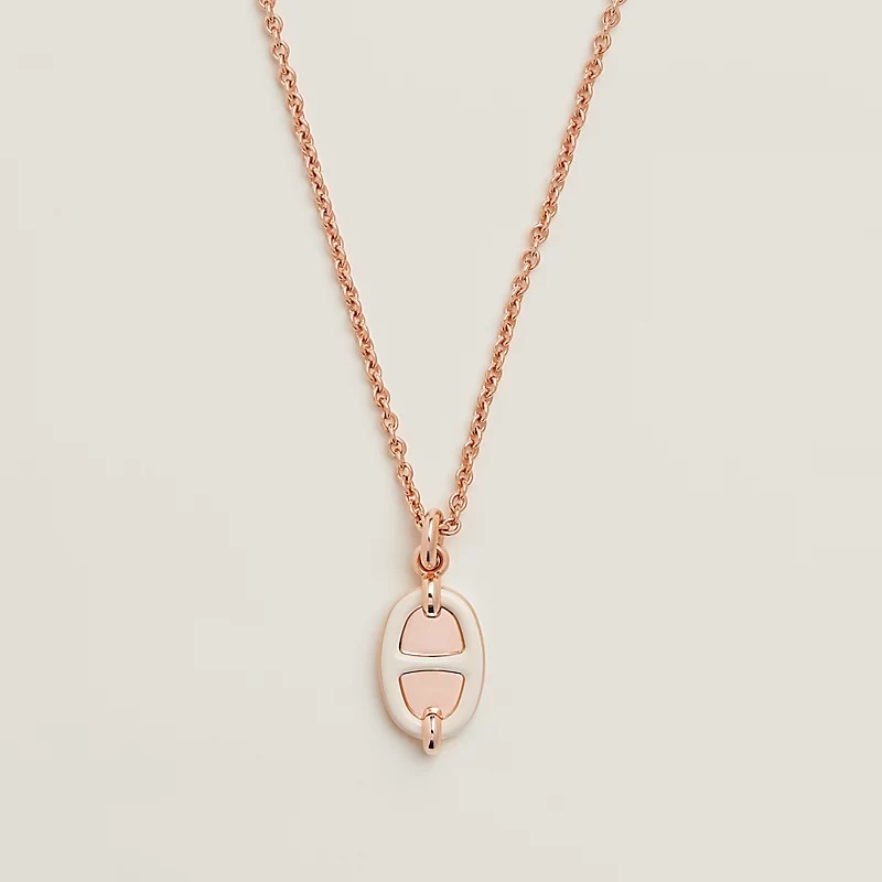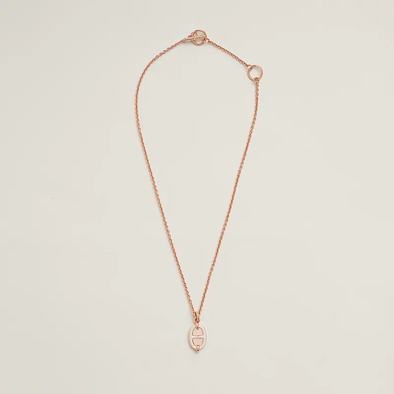 Hermes Mini Maillon 奶油白玫瑰金豬鼻項鍊