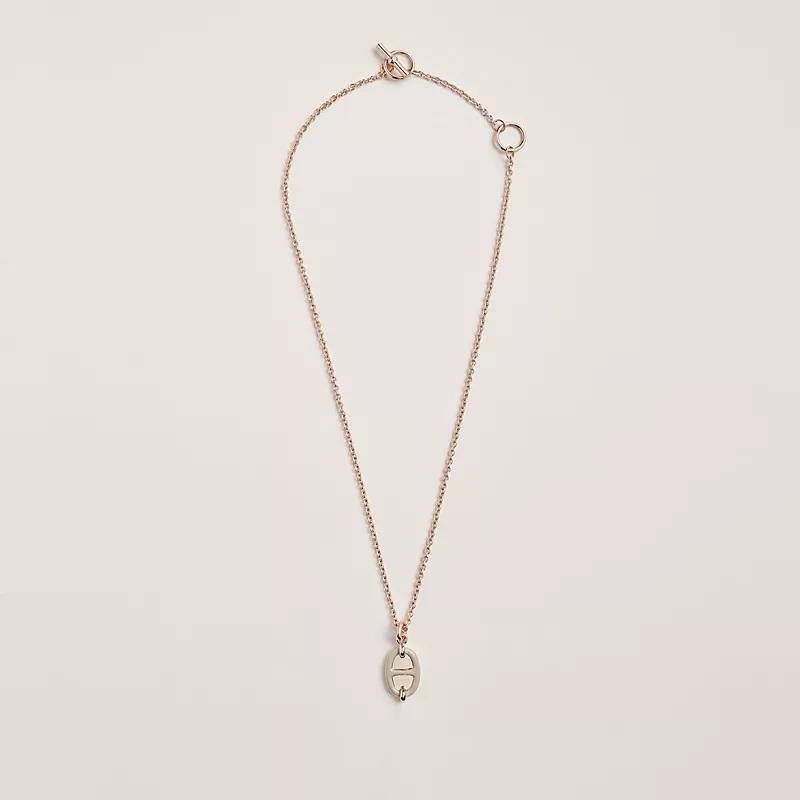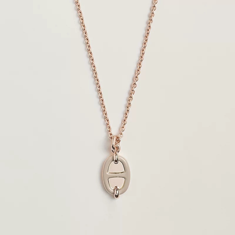 Hermes Mini Maillon 奶茶玫瑰金豬鼻項鍊