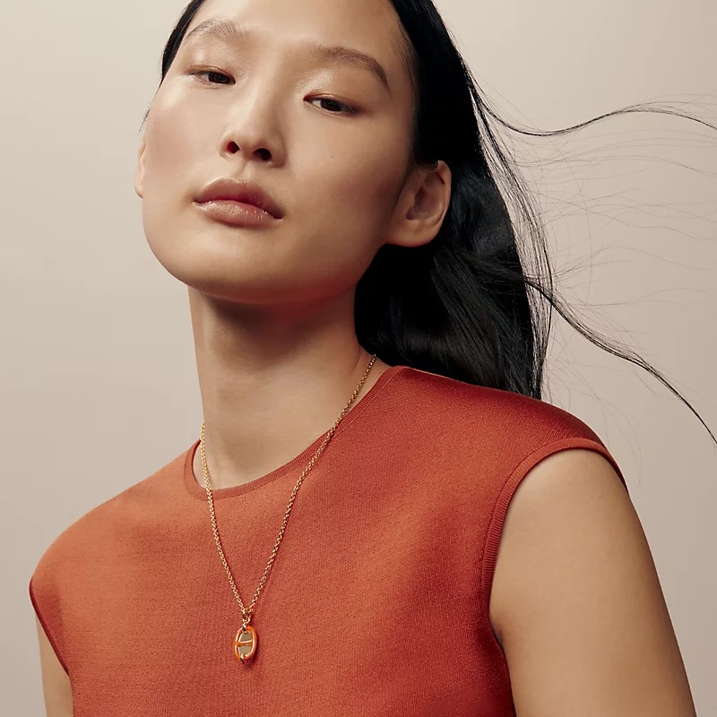 Hermes Mini Maillon 奶茶金豬鼻項鍊
