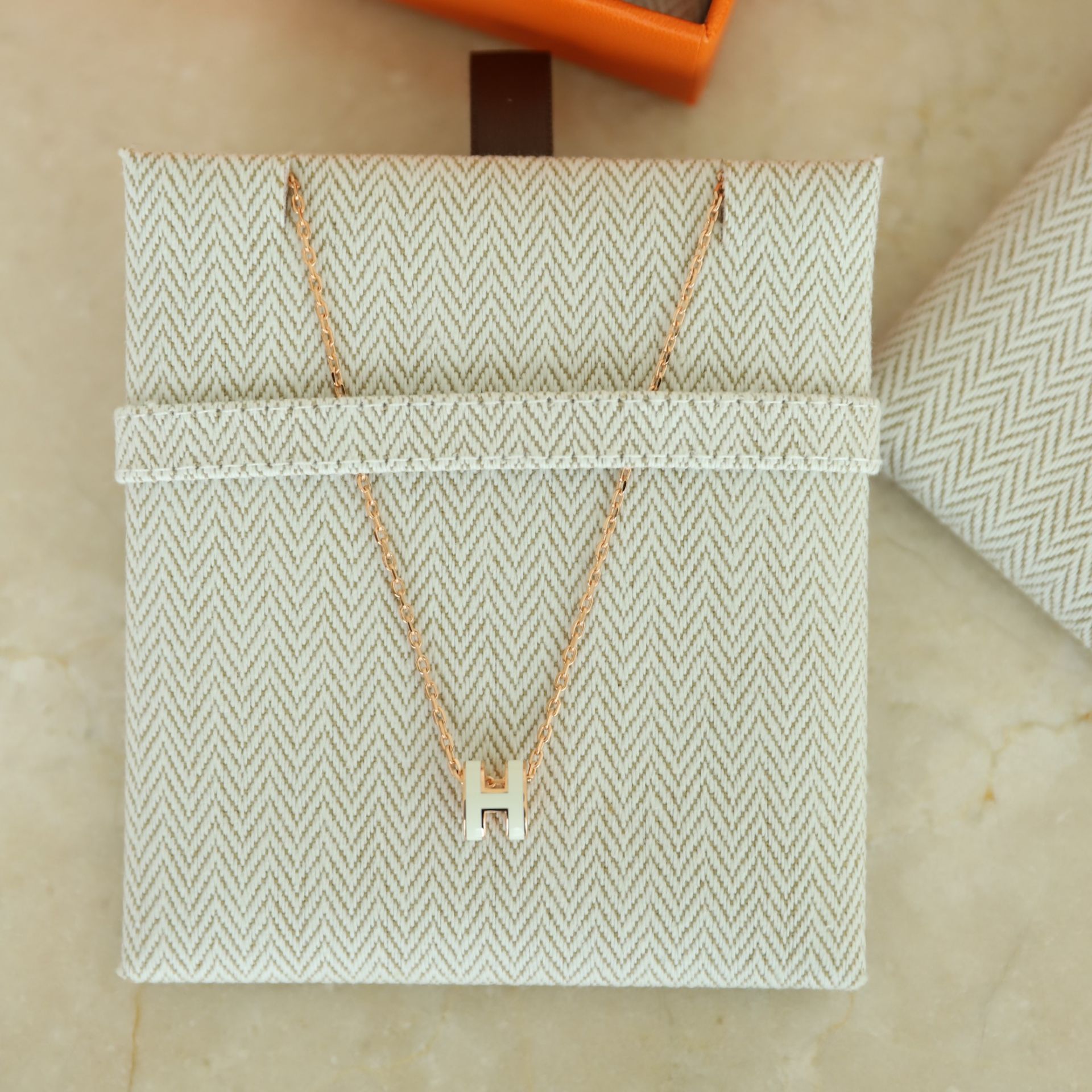 Hermes Mini pop h 白玫瑰金項鍊