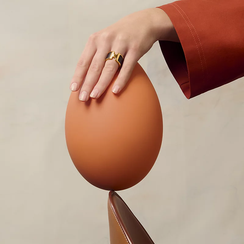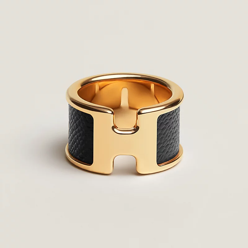 Hermes Olympe 黑金寬版H戒指/尺寸:XS