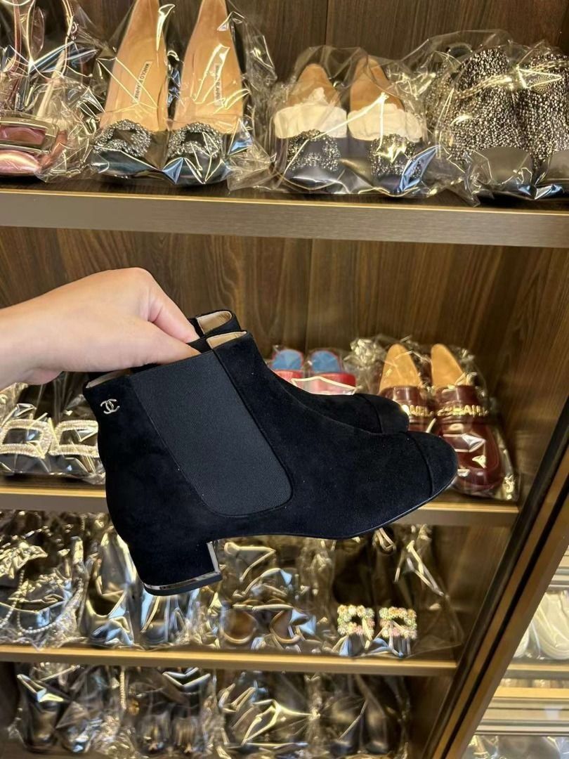 Chanel 麂皮短靴 全新36號 側面雙C 經典百搭款
