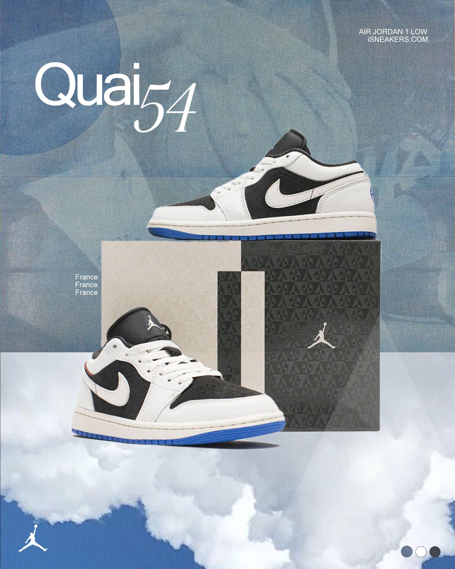 iSNEAKERS 現貨 Air Jordan 1 Low "Quai 54" 黑白藍 HQ0764-001