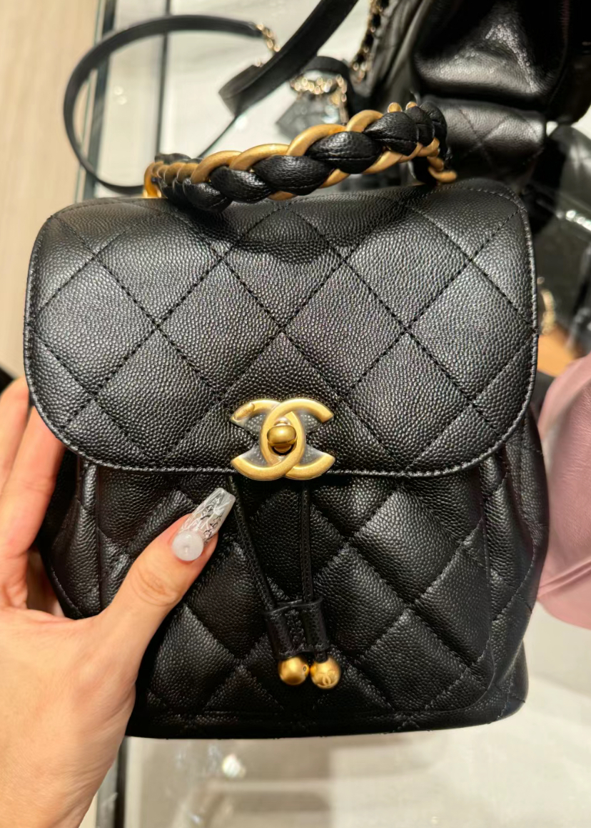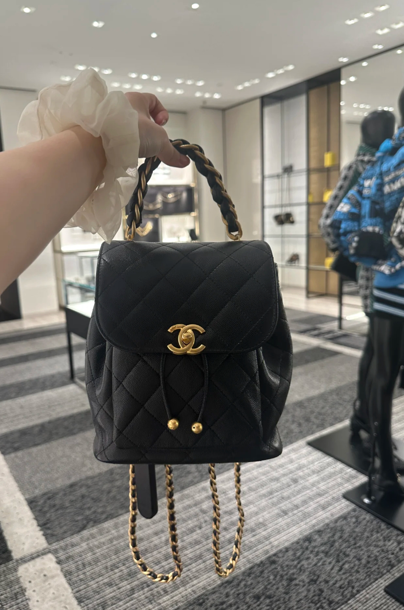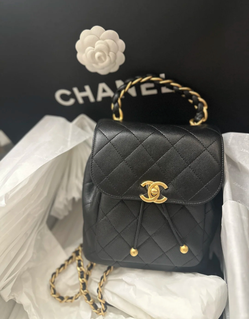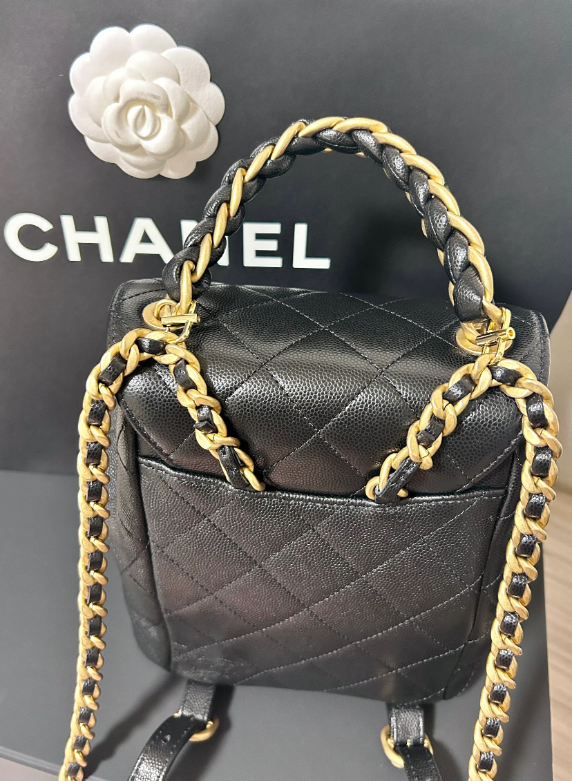 CHANEL香奈兒 Chanel AS4979 新款 荔枝皮雙肩粗鍊後背包 黑