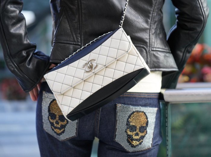 Chanel 香奈兒包 A93137 限量黑白格紋鍊帶包