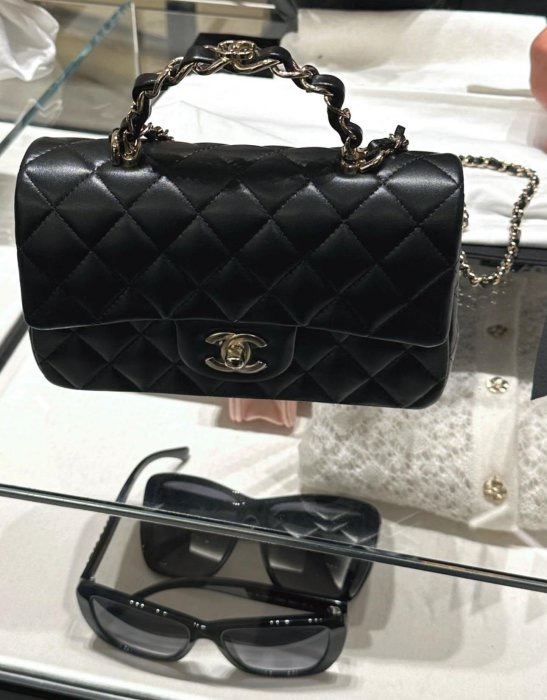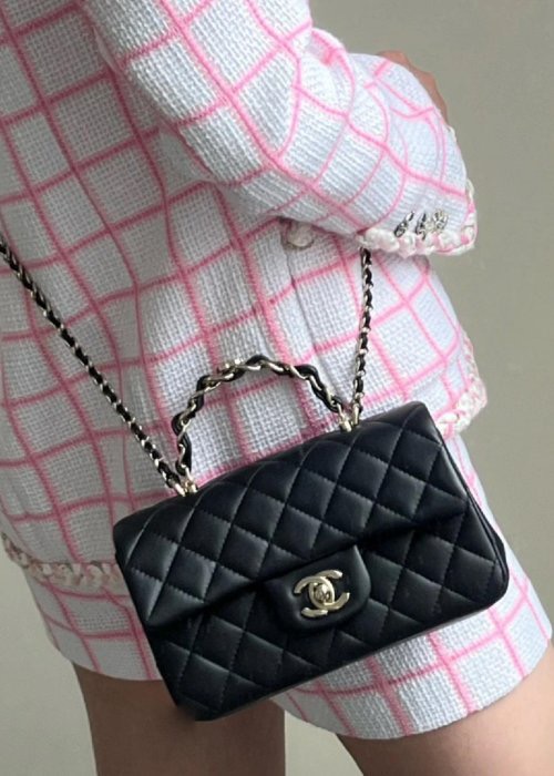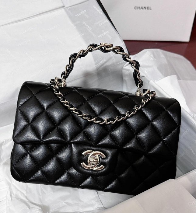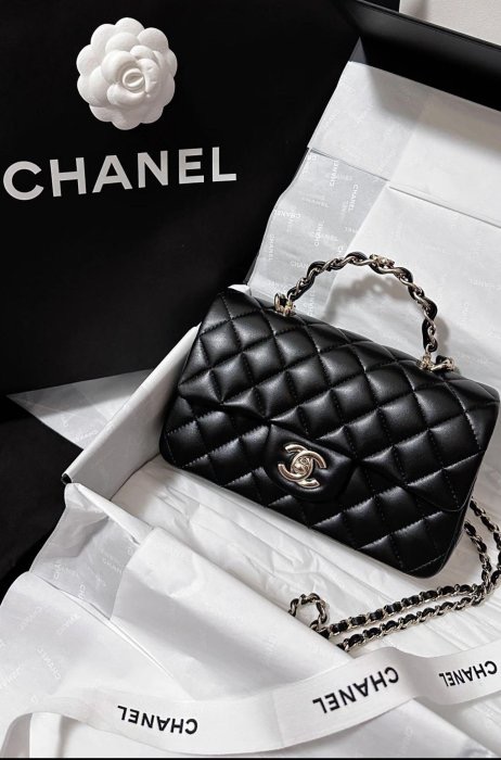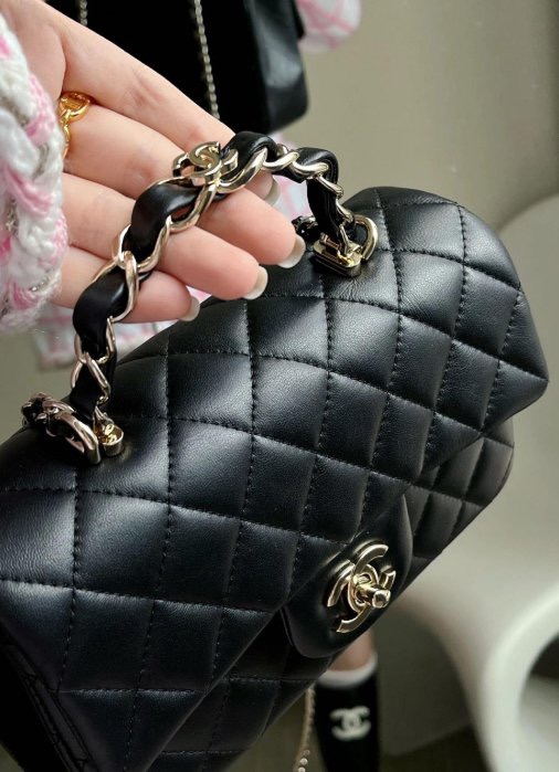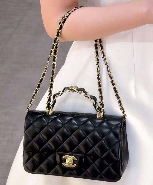 CHANEL 香奈兒 23k AS2431 金飾皮穿鏈手柄mini cf 黑金