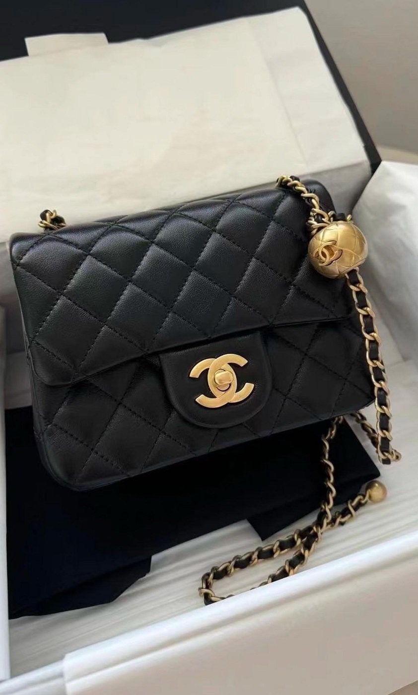 Chanel 香奈兒 AS1786 金球鏈帶斜背包 方胖黑 Chanel 這顆「球」 讓包包使用更便利
