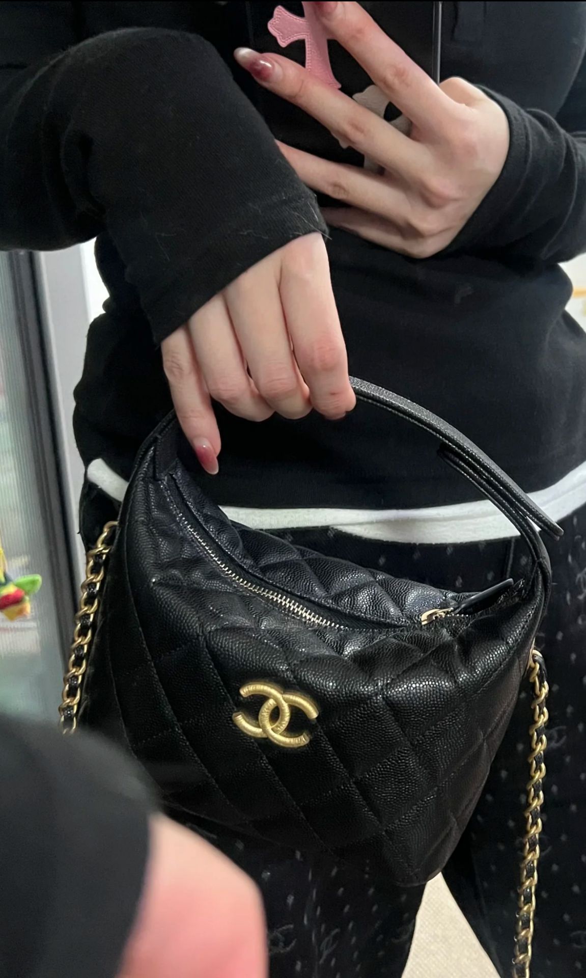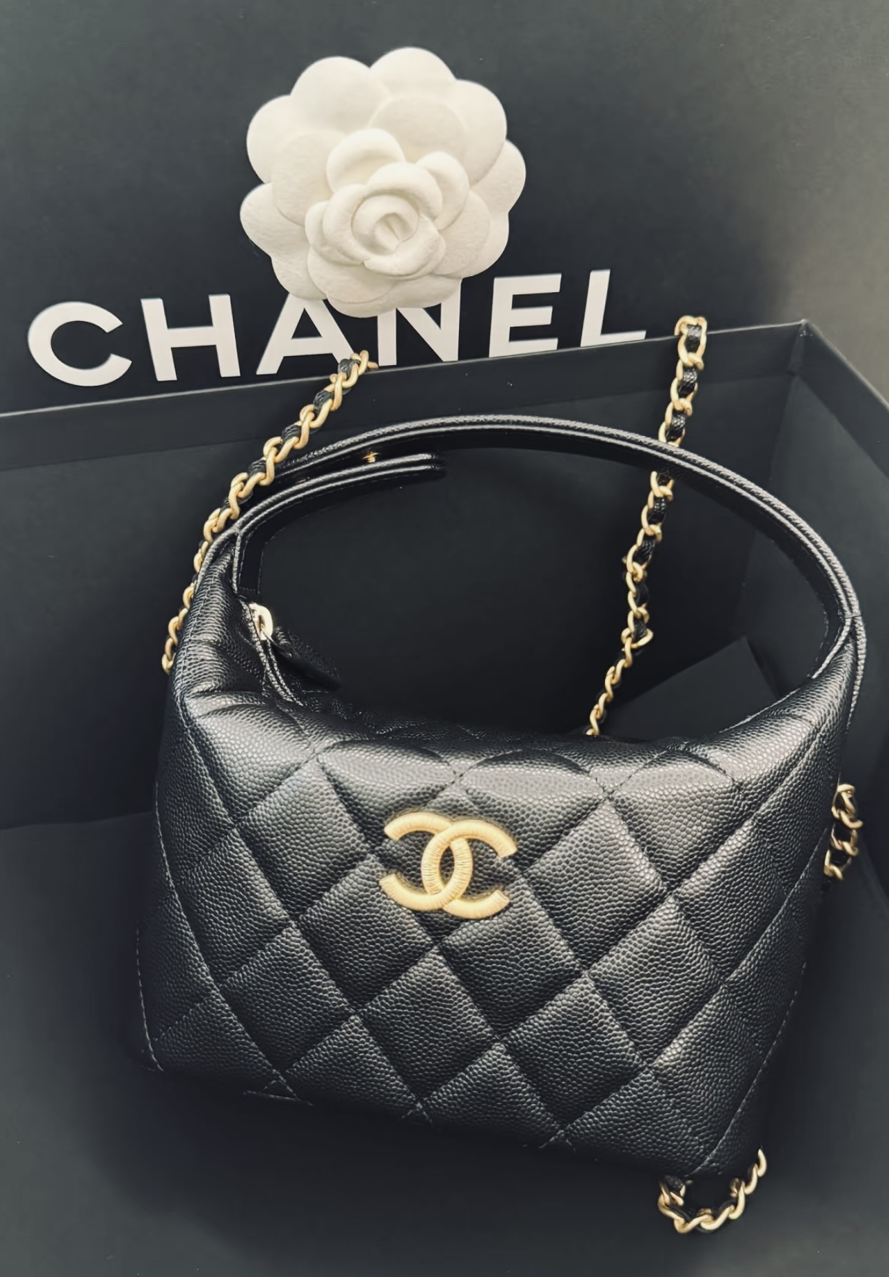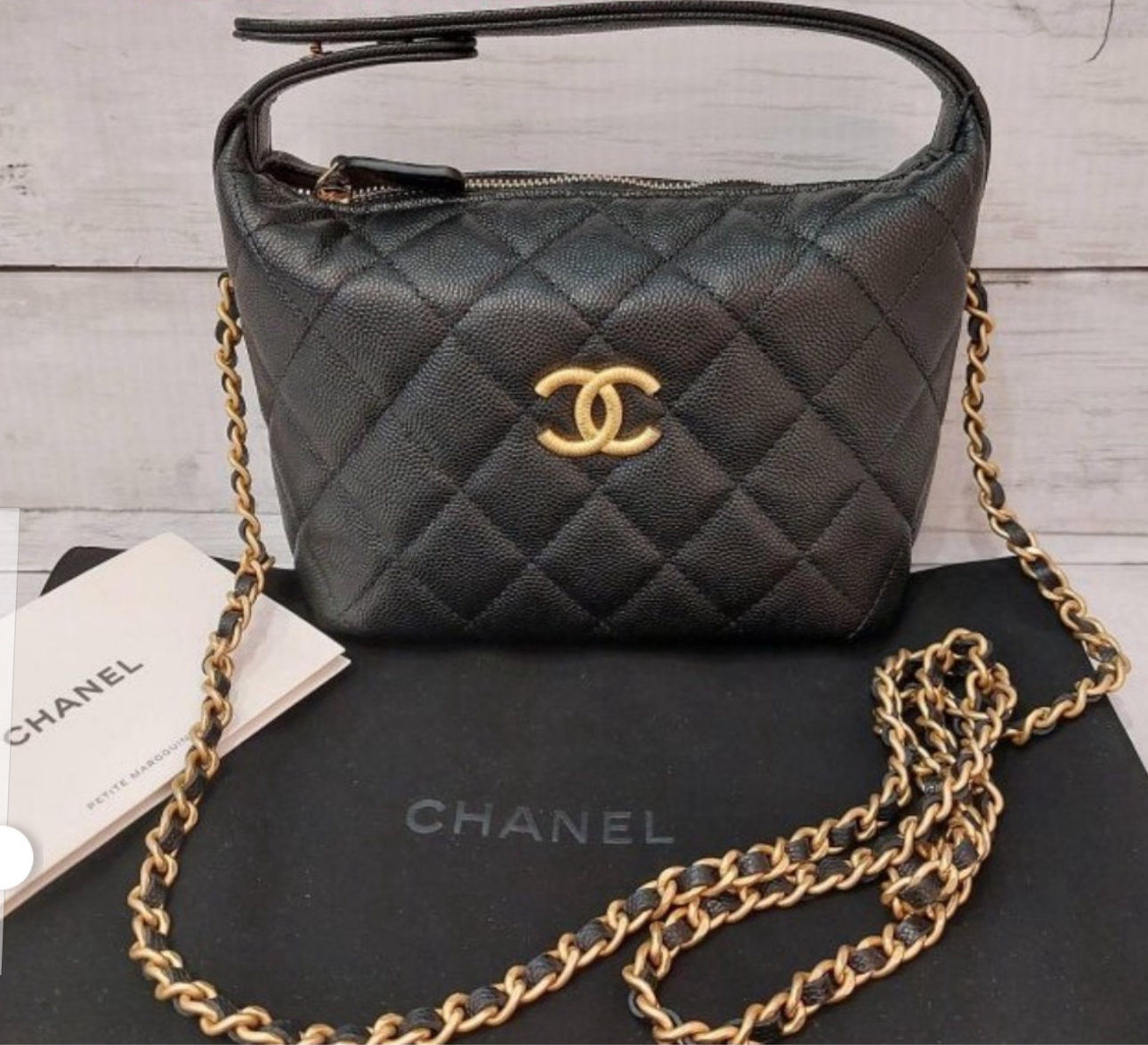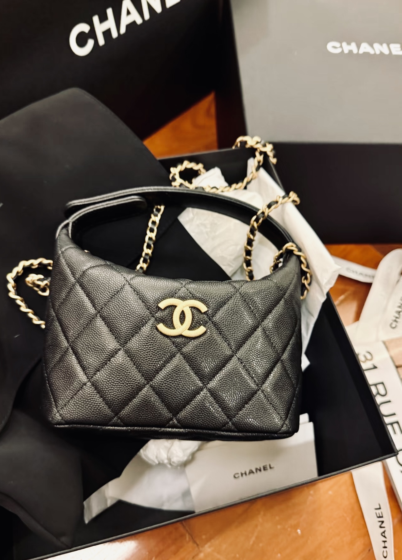 Chanel 香奈兒 CHANEL AP4484 黑色荔枝皮 大 CC 斜背包手提包便當盒包