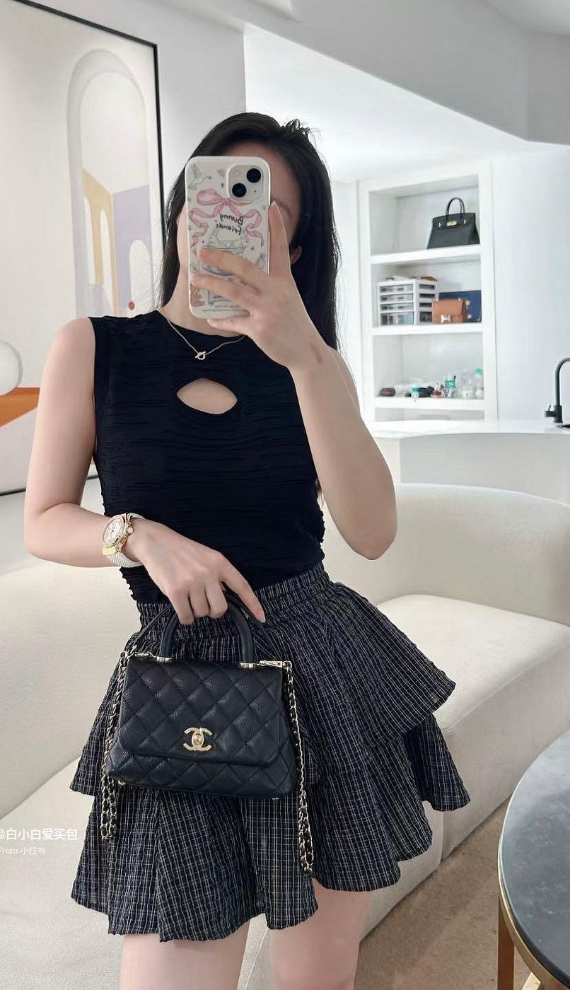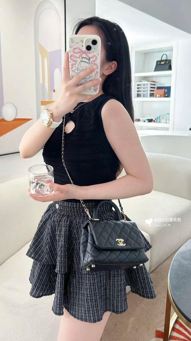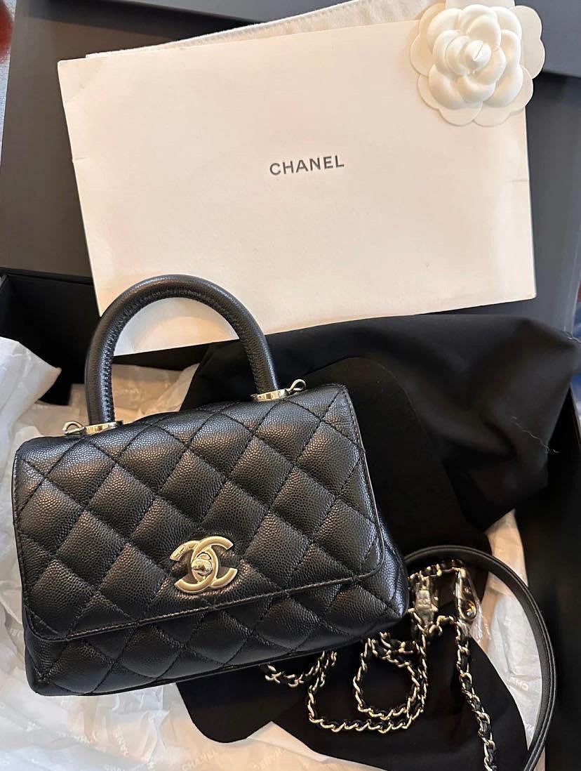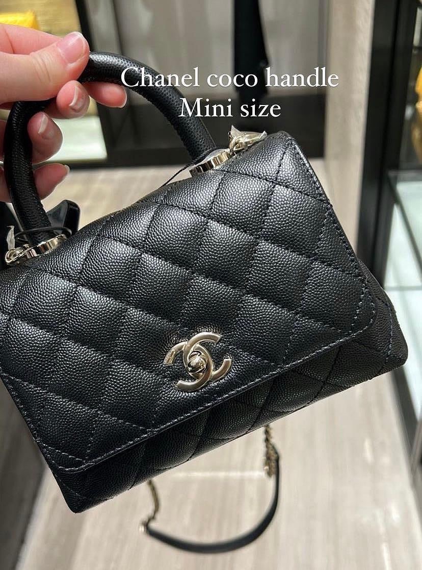 Chanel 香奈兒 mini coco handle 荔枝皮 手提鍊帶包 黑