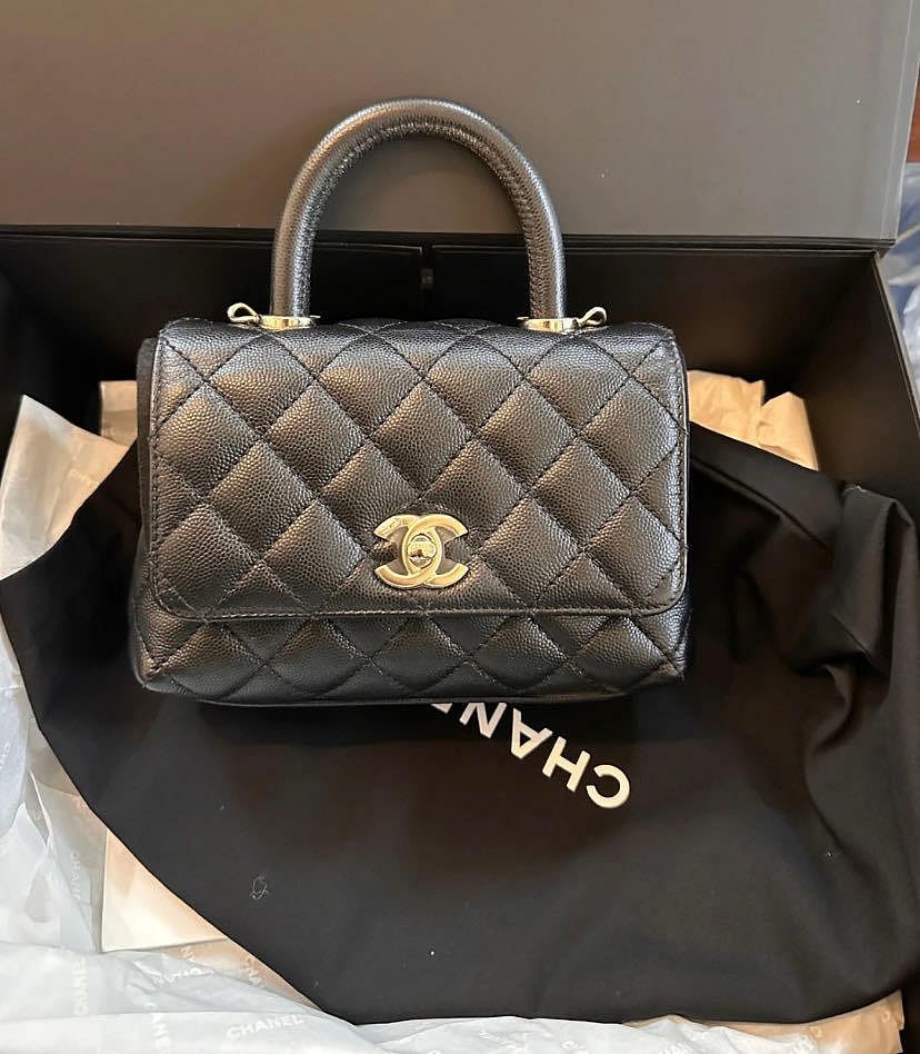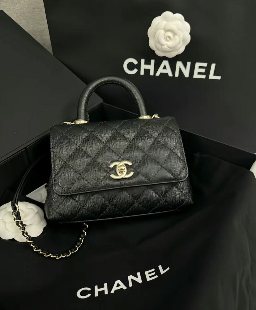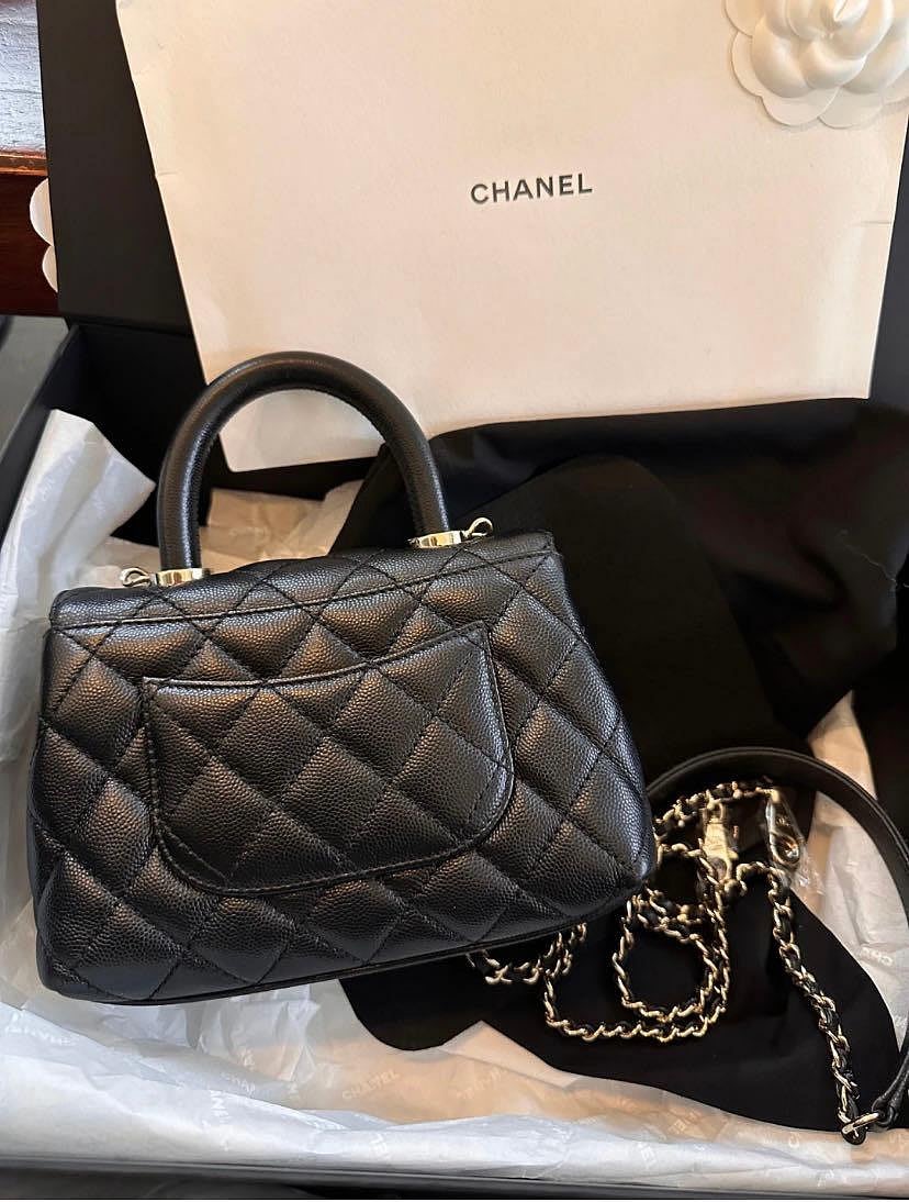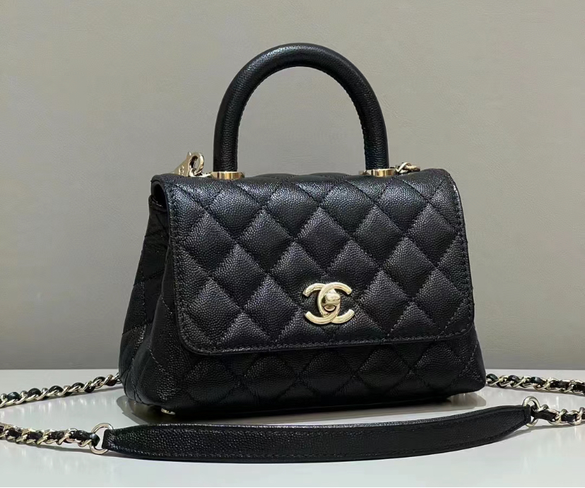 Chanel 香奈兒 mini coco handle 荔枝皮 手提鍊帶包 黑