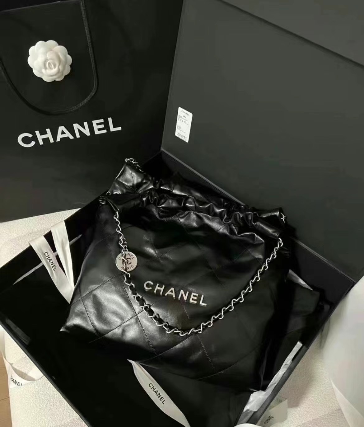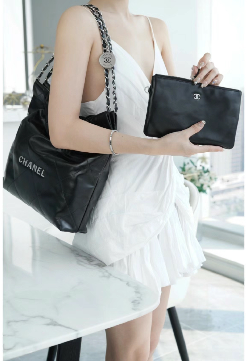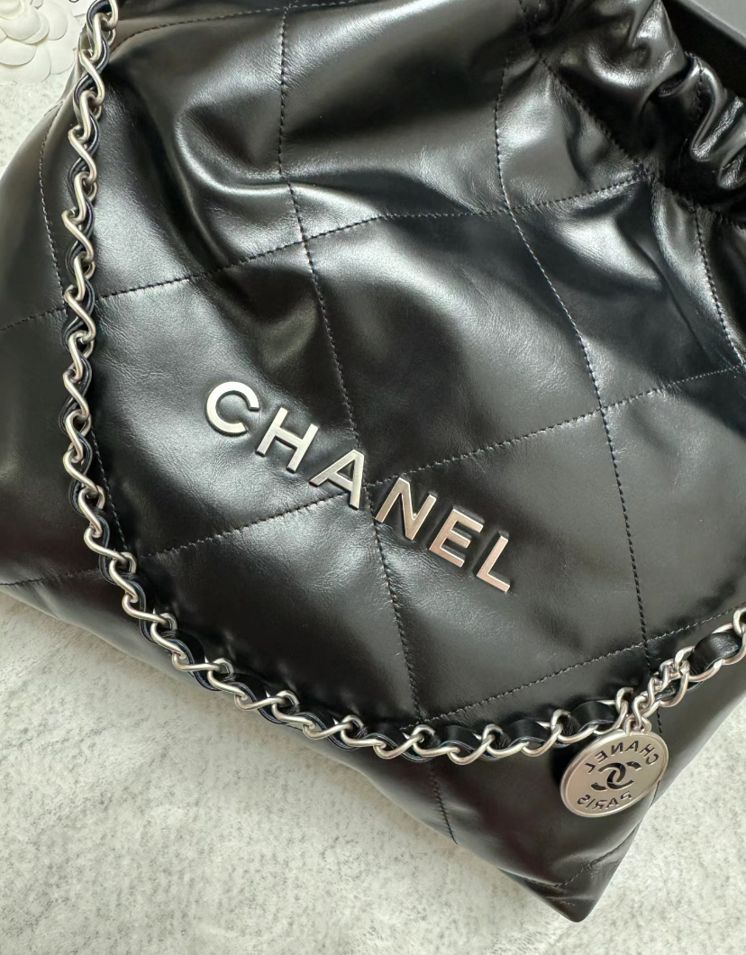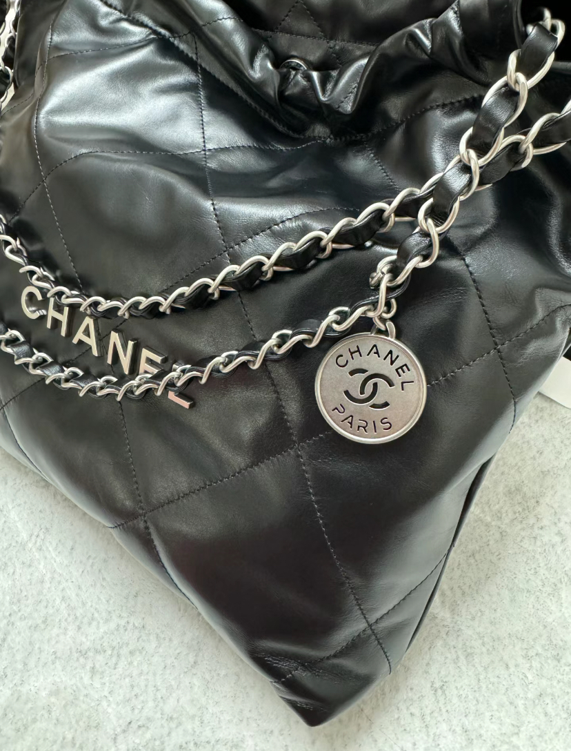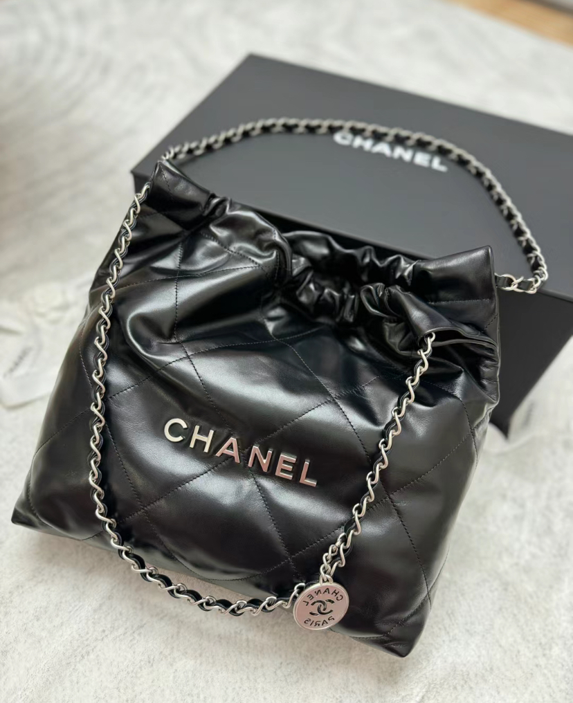 CHANEL 22 AS3260 垃圾袋小型 黑銀肩背包