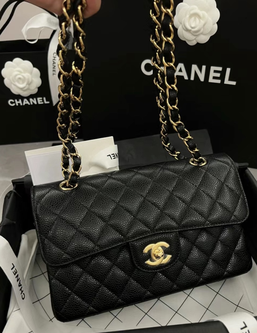 Chanel A01113 Coco 23 cm 荔枝黑金鍊 芯片 經典肩背包 漲價前舊價