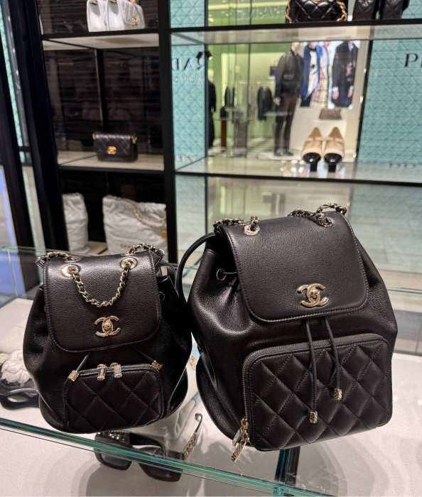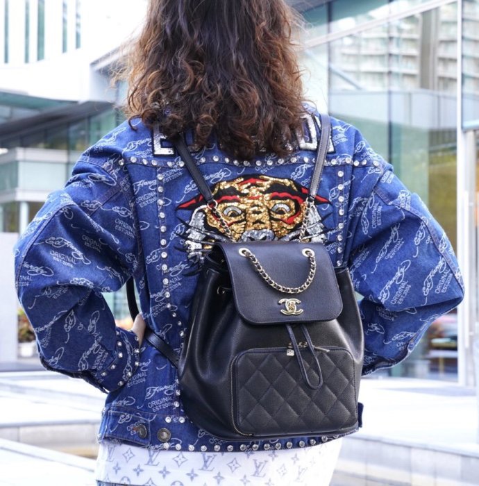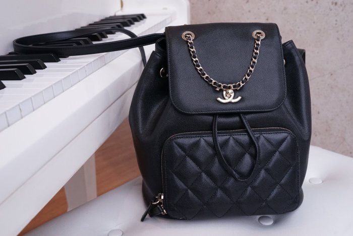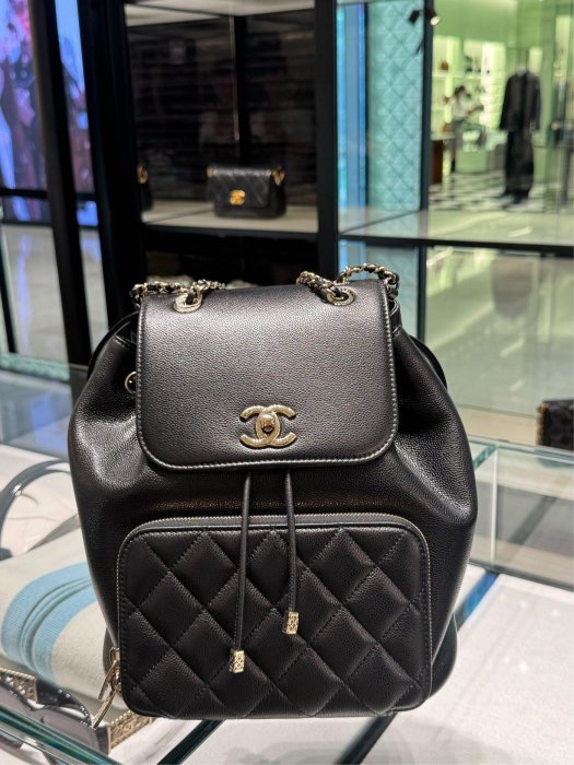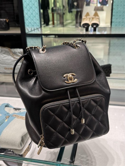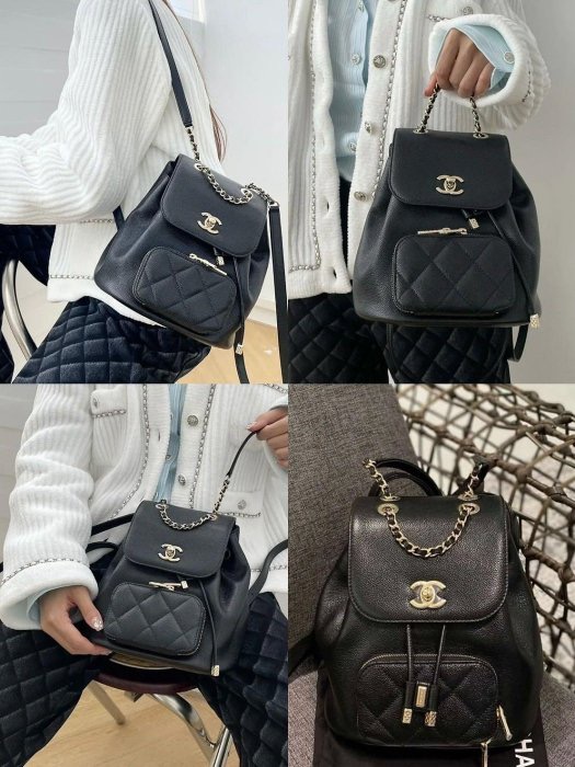 Chanel A93748 affinity Backpack 荔枝紋後背包 黑金鍊