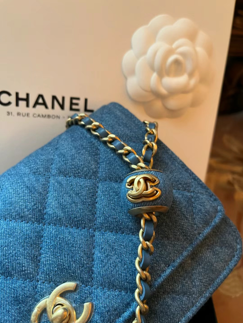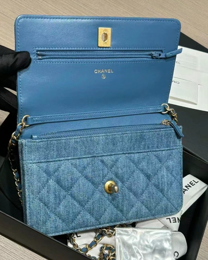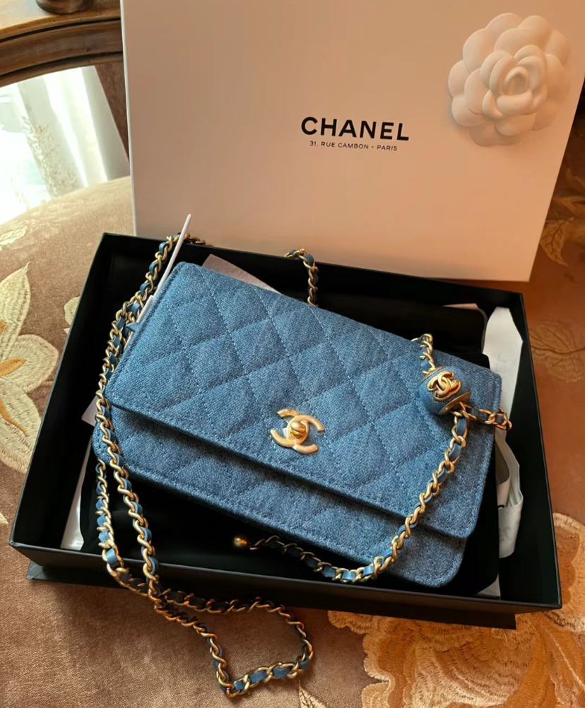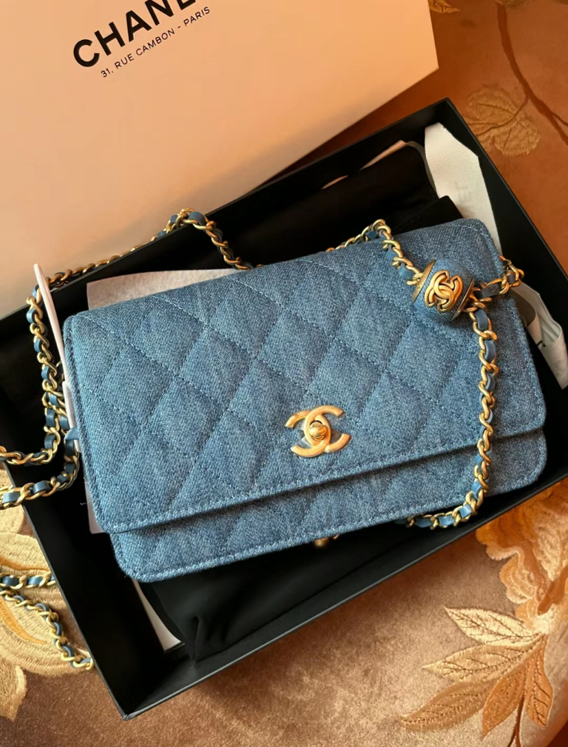 Chanel AP1450 牛仔金球 WOC 鍊帶包 牛仔藍