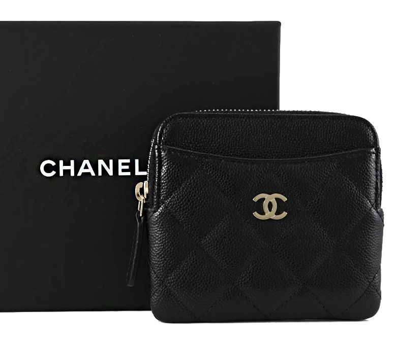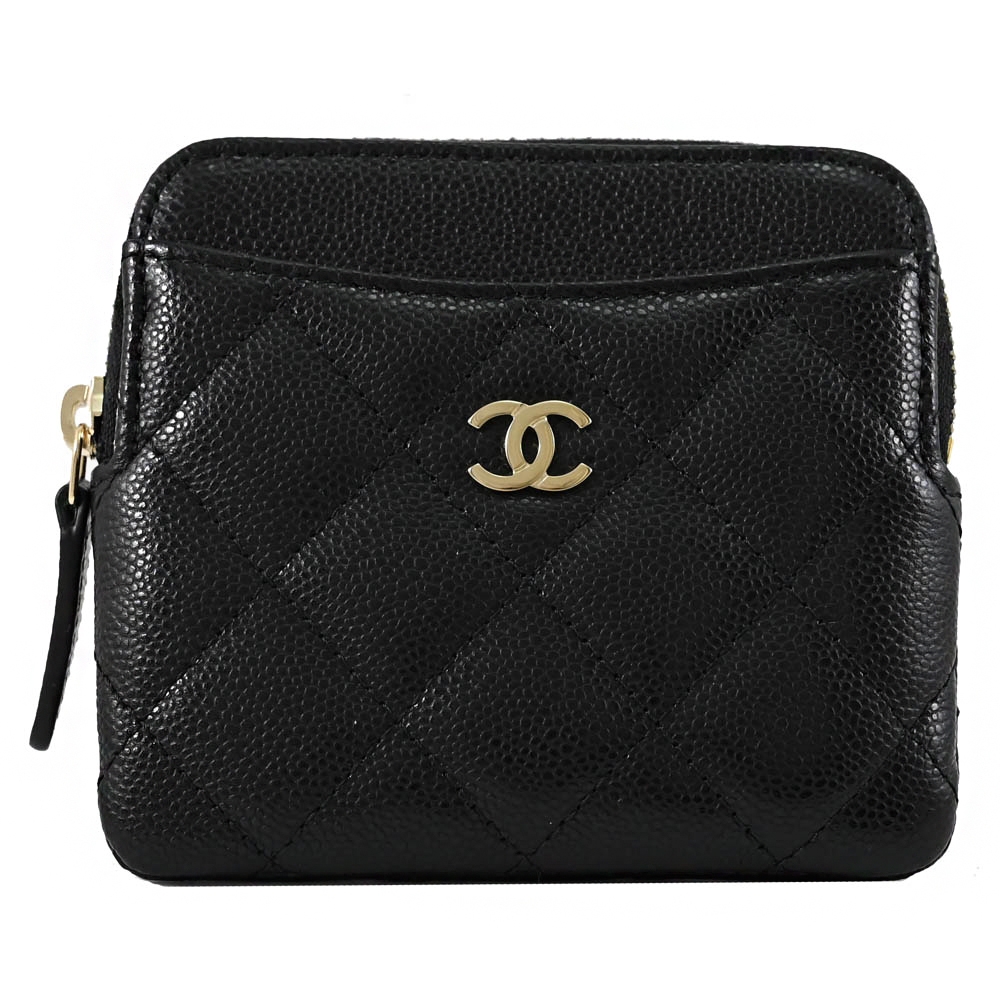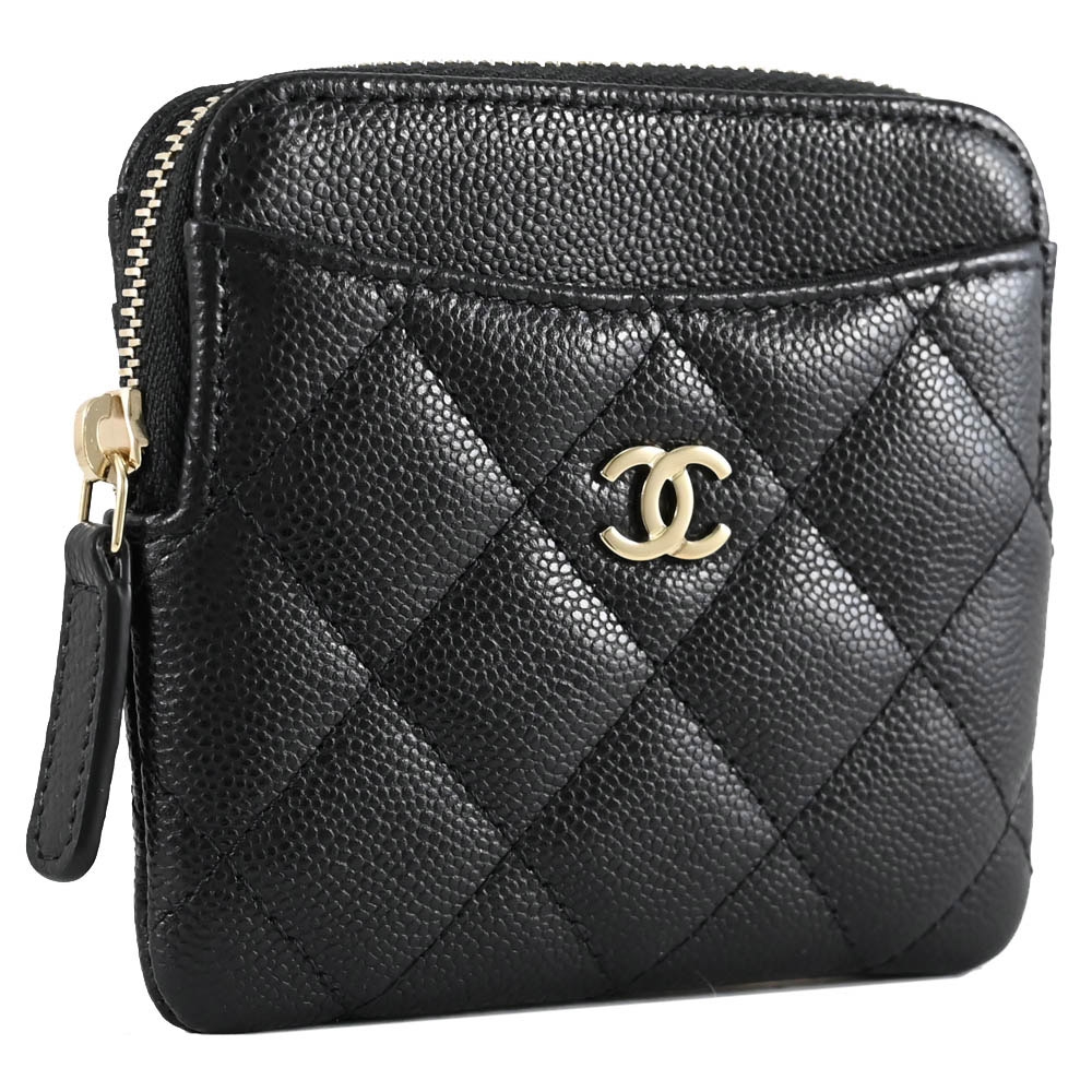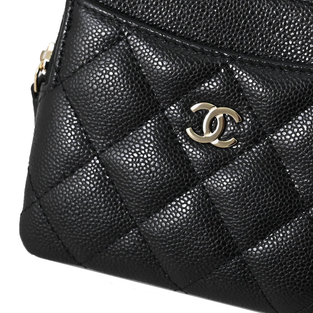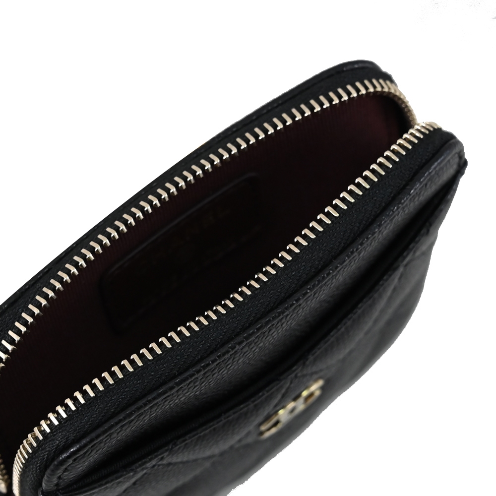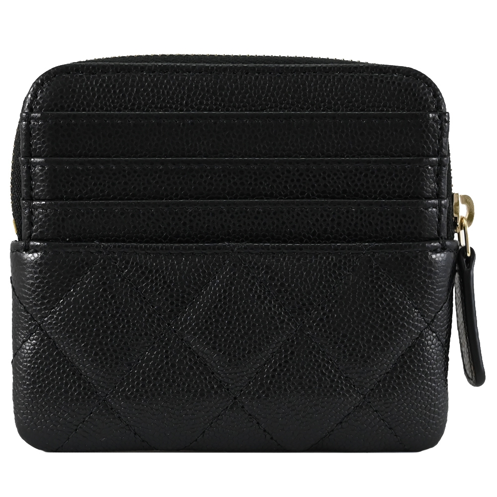 CHANEL AP2061 經典雙C 菱格荔枝皮5卡拉鍊零錢包.黑金