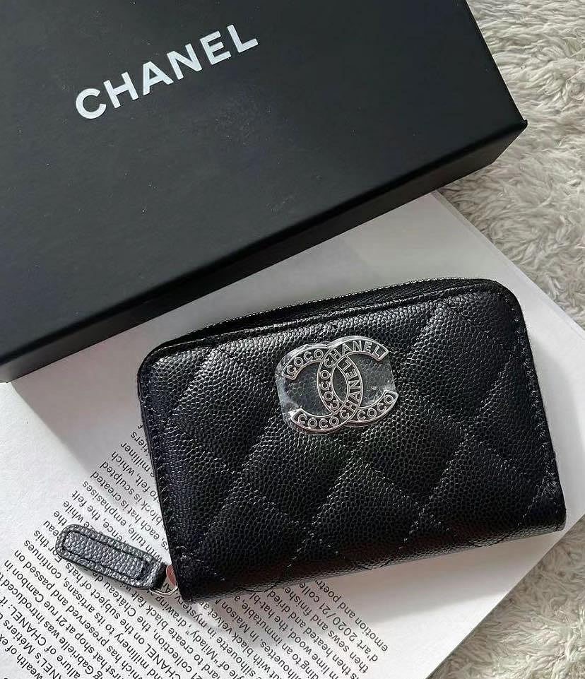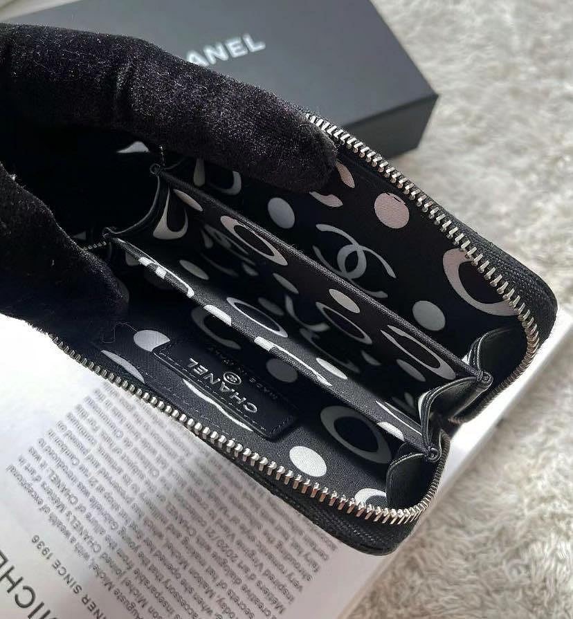 Chanel AP3830 新款 鏤空 CC 荔枝格紋卡片零錢包 黑