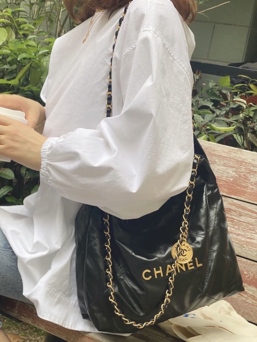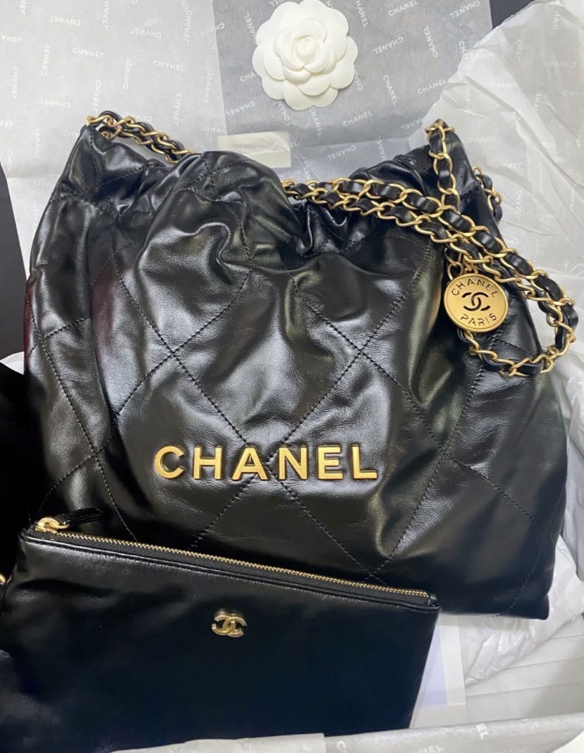CHANEL AS3260 新款 22 肩背包 黑金小型
