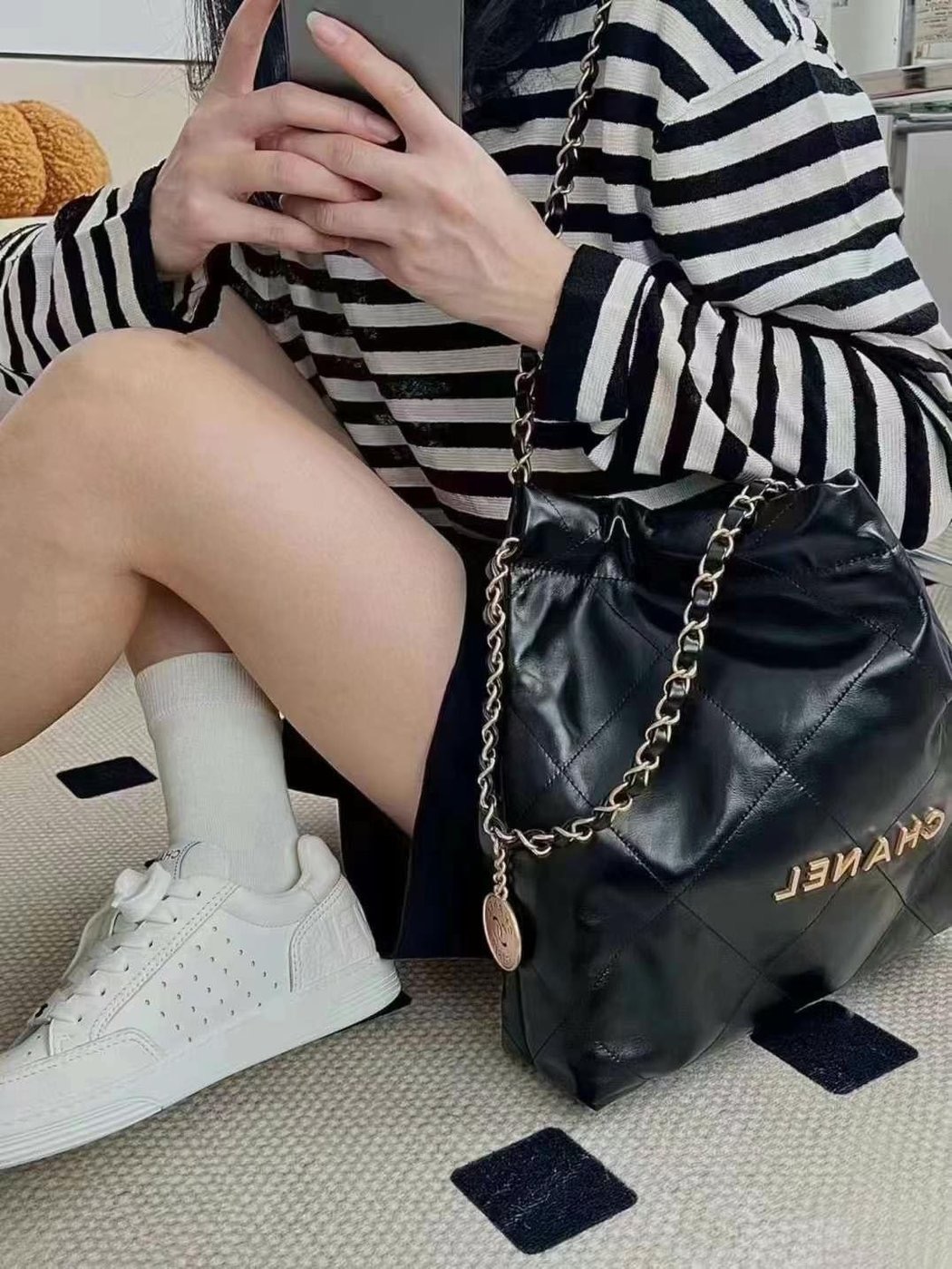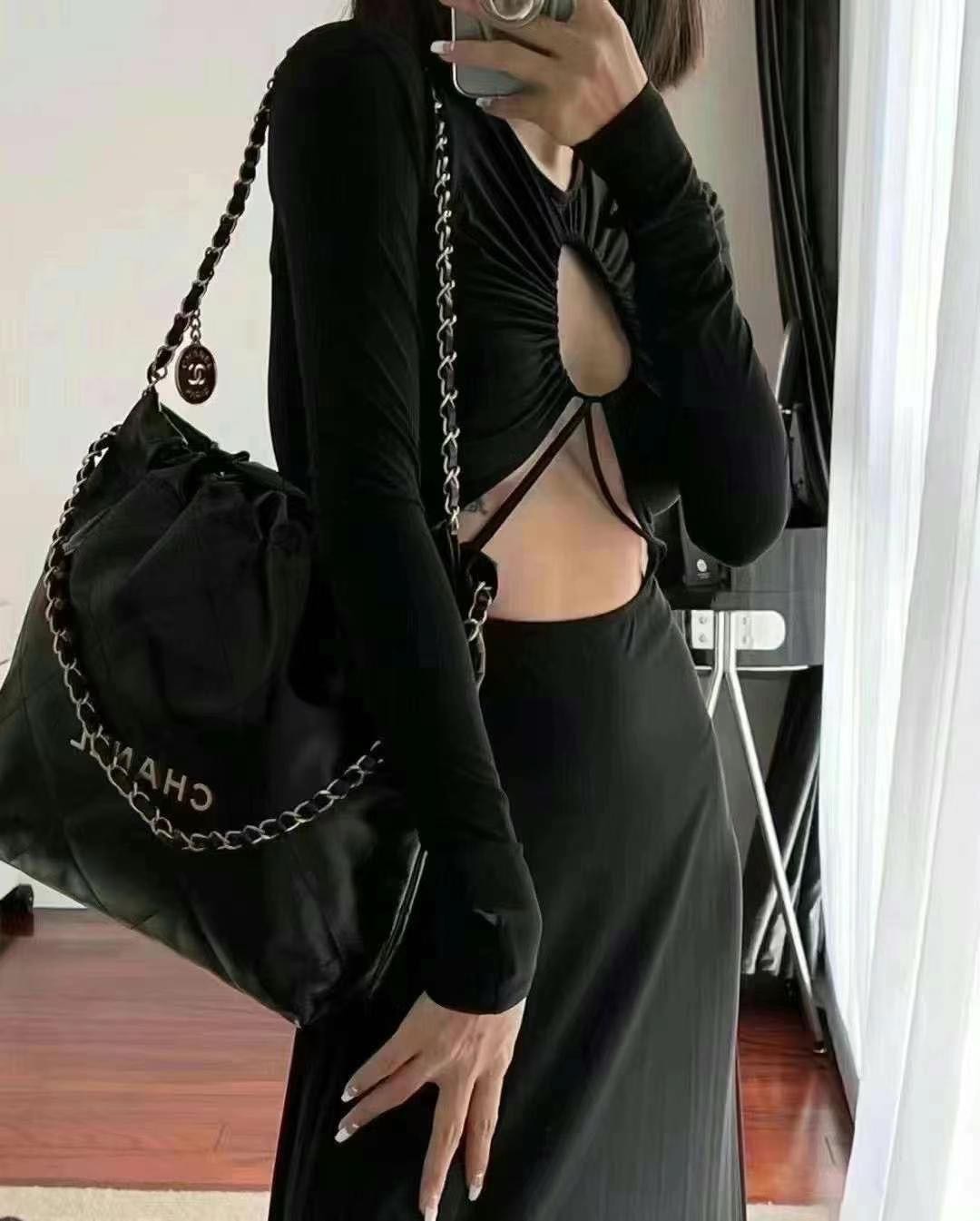 CHANEL AS3261 Chanel 22 垃圾袋 中型黑金