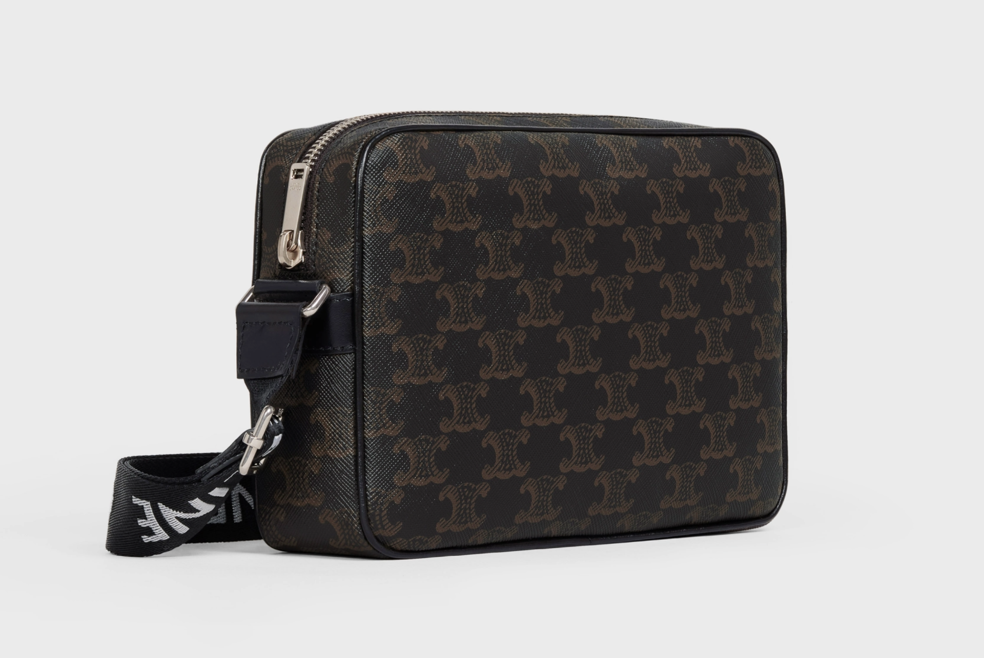 男款。Triomphe帆布。斜揹及掛肩。設有扁平內袋。