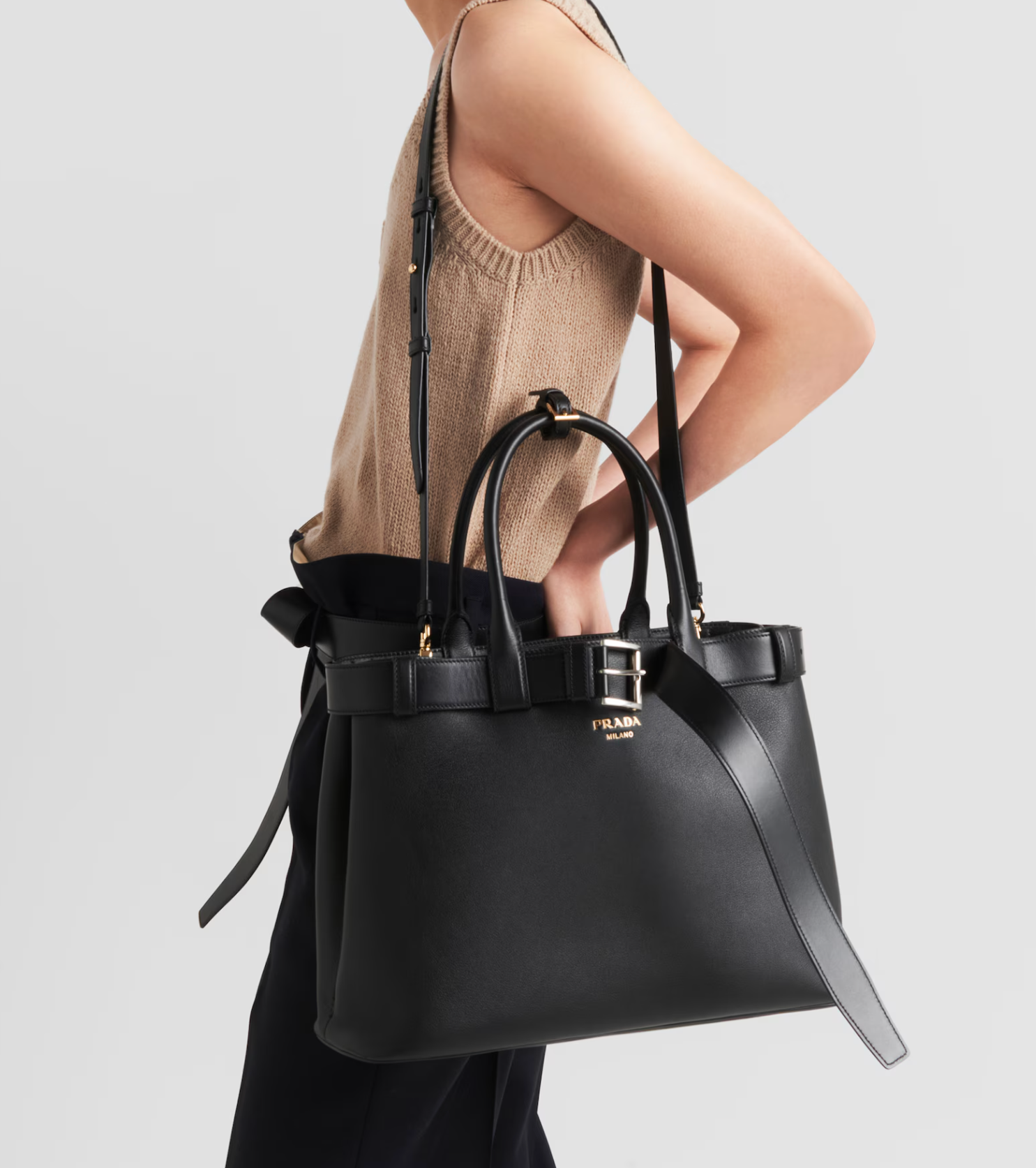 Prada Buckle 大號皮革手袋連皮帶