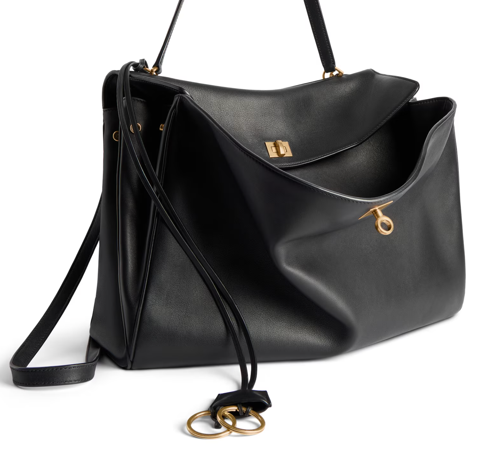 2024 最熱銷。平滑小牛皮製成。旋鎖開合搭配復古金色配件。可拆卸肩帶與鑰匙扣。義大利製作工藝。