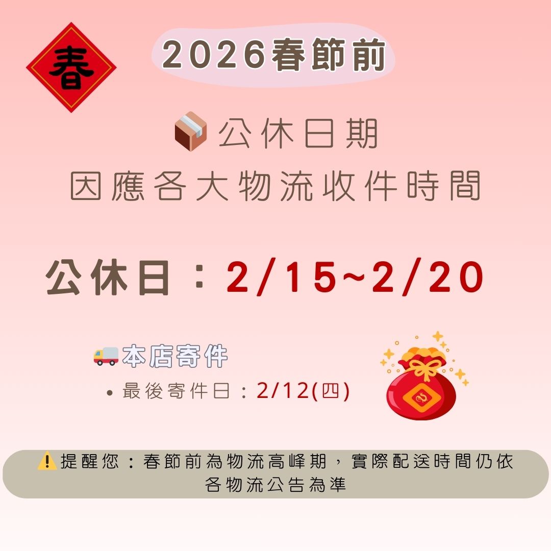 * 出貨前都會先與顧客確認訂單及出貨事宜,故出貨後若因私人或非商品因素退回時,物流運費需由顧客自行承擔