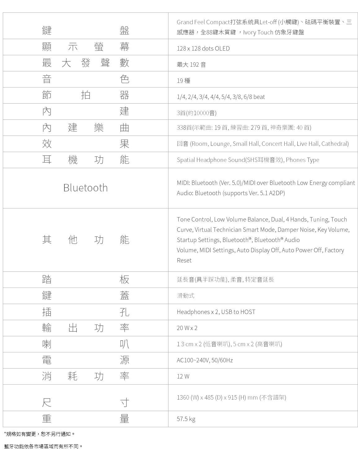★ 黑白鍵皆使用全木質的 Grand Feel Compact 鍵盤系統