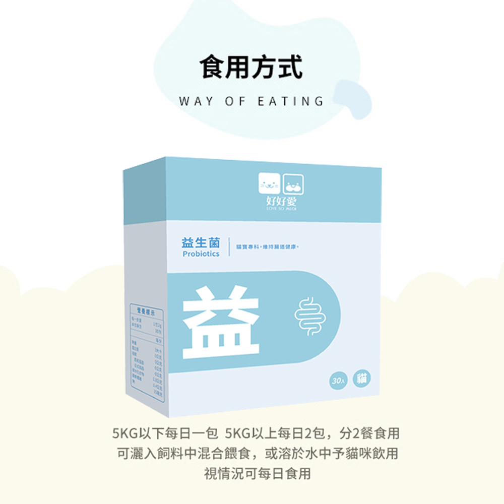 餵食方式|可灑入飼料中混合餵食,視情況可每日食用,5KG以下 每日1包,5KG以上 每日2包