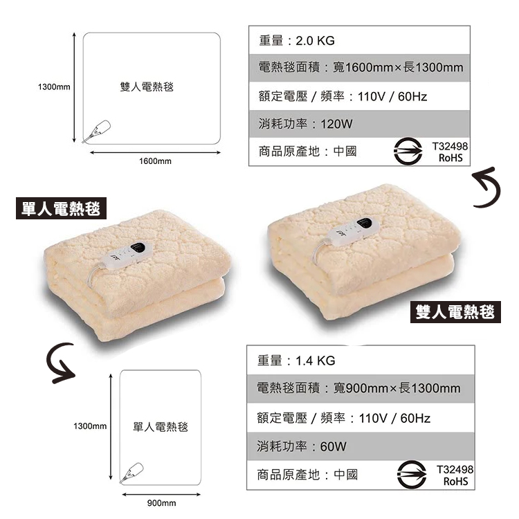 ✔品 名: 微電腦泰迪絨電熱毯(雙人)