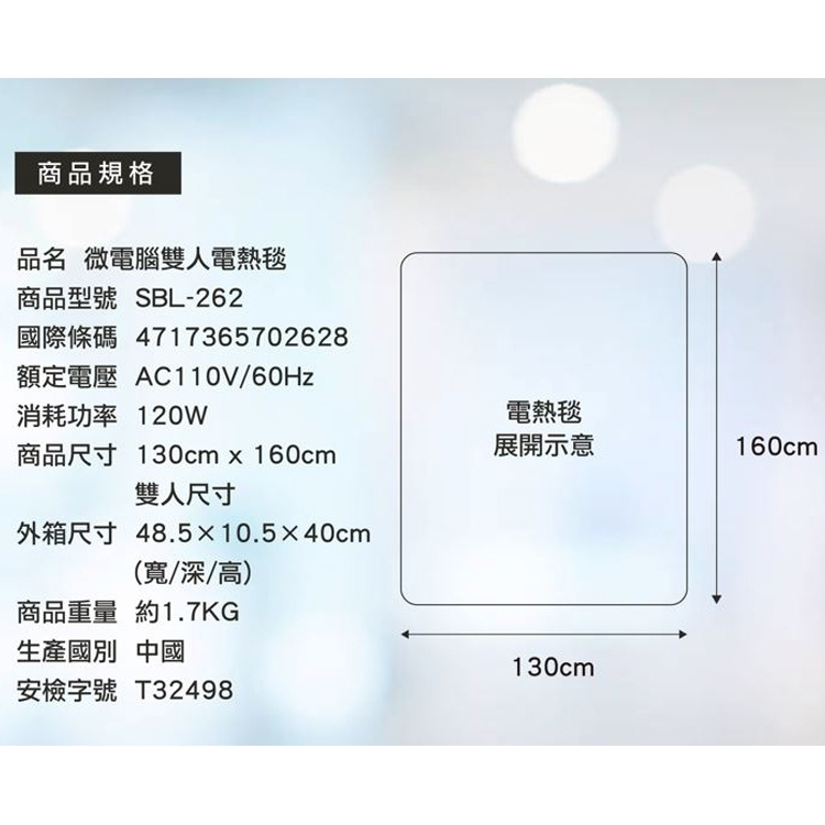 品 名: 微電腦雙人電熱毯(咖啡色)