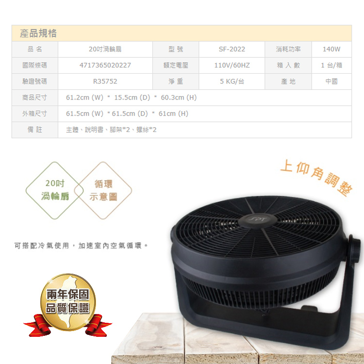 【尚朋堂】 20吋渦輪扇 風距可吹17M