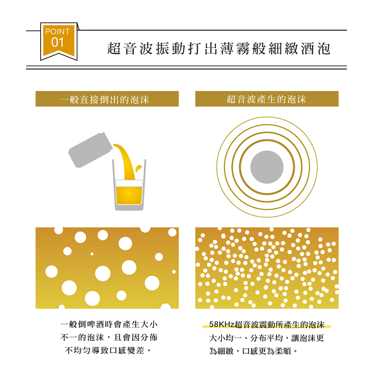 2. 一秒4萬次超音波振動技術,打出極致綿密酒泡