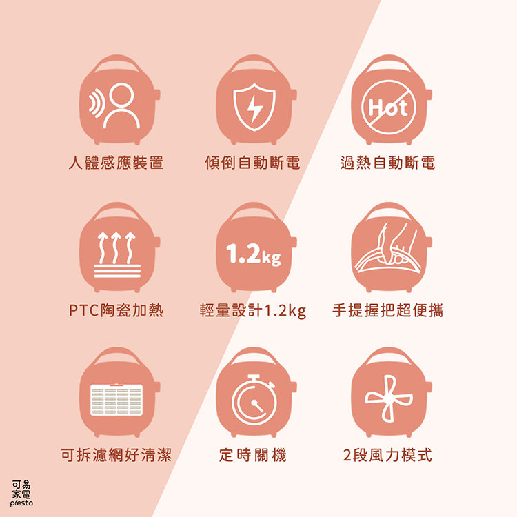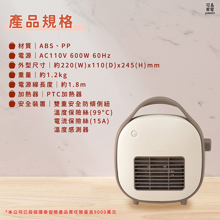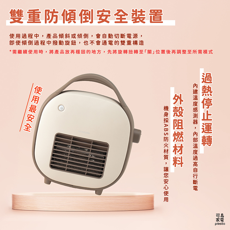 -人體自動感應器,節能省電 -PTC陶瓷加熱 即開瞬暖低噪音 -傾倒/過熱自動斷電