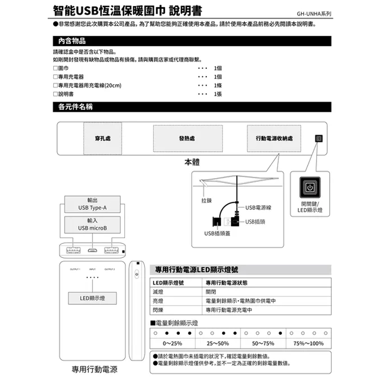 日本GreenHouse | 智能USB恆溫保暖圍巾 GH-UNHA