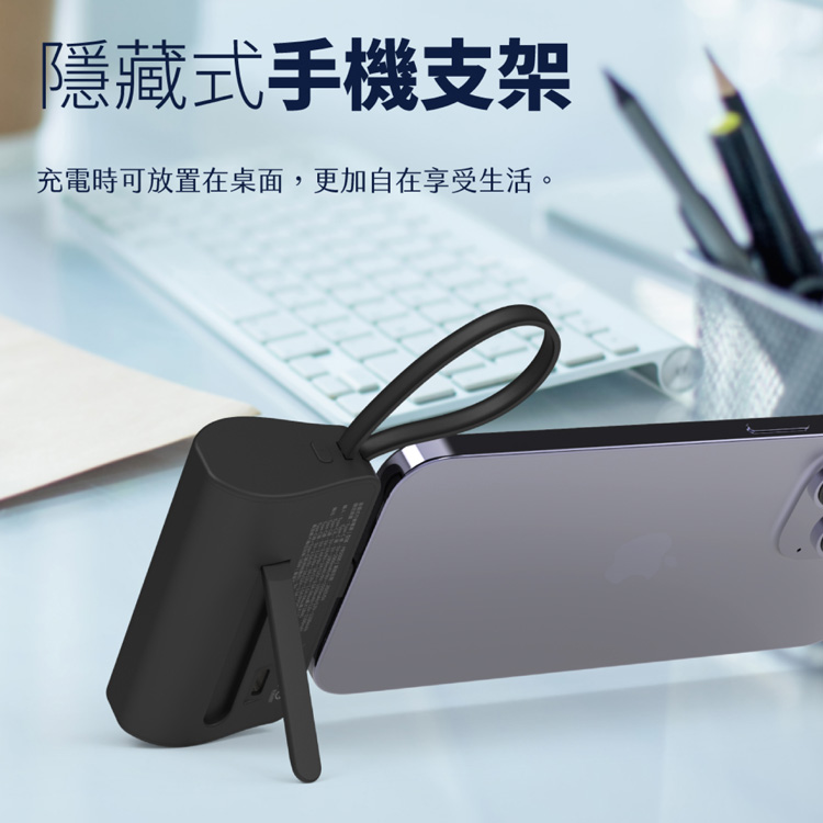 5000mAh 支援PD和QC快充 BSMI安規認證 R39397 隱藏式腳架 充電時可放置桌面 LED燈小型照明 蘋果/安卓都適用 電量百分比數位顯示