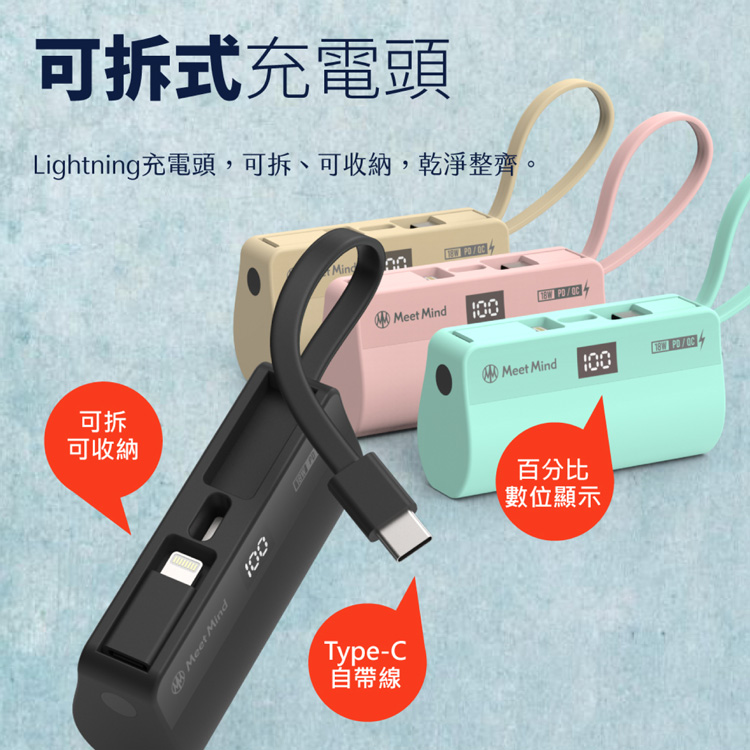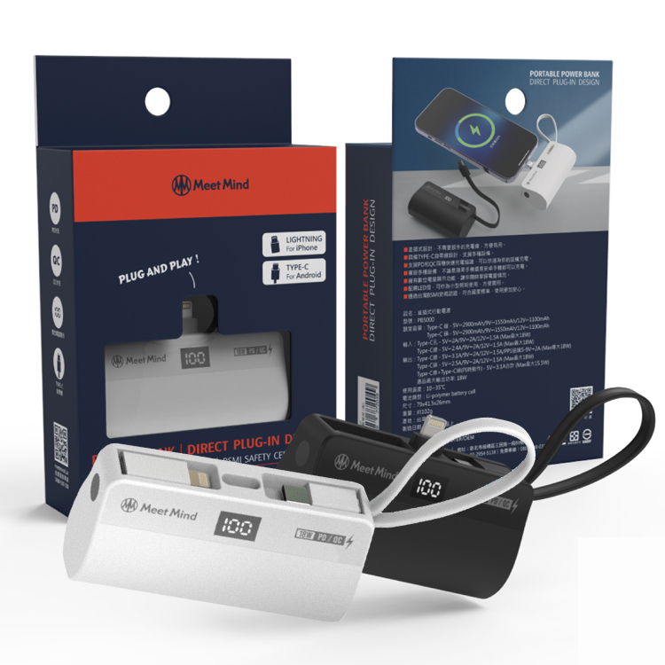 【Meet Mind】直插式行動電源 PB5000 支援PD/QC快充協議