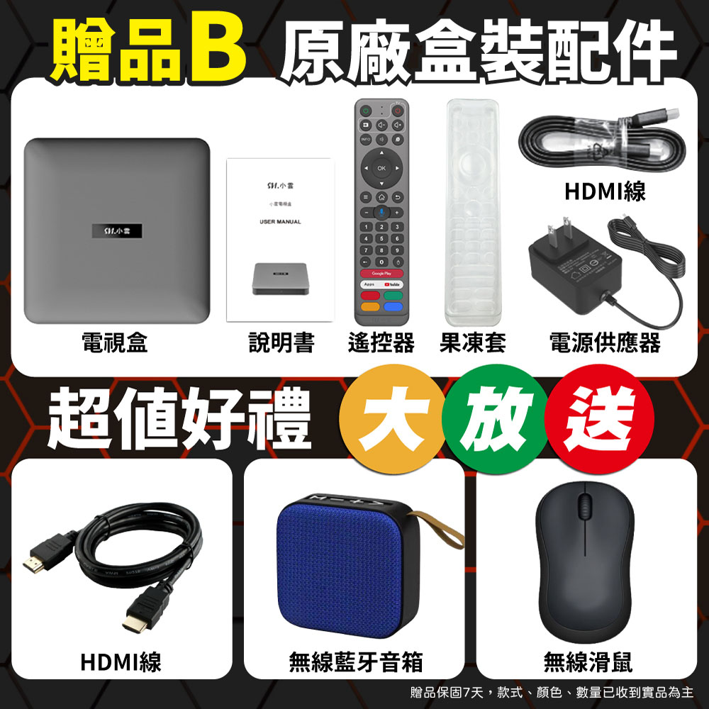 🎁B好禮:小雲盒子10P+(原廠全配)、無線藍牙喇叭、無線滑鼠、4K-HDMI線
