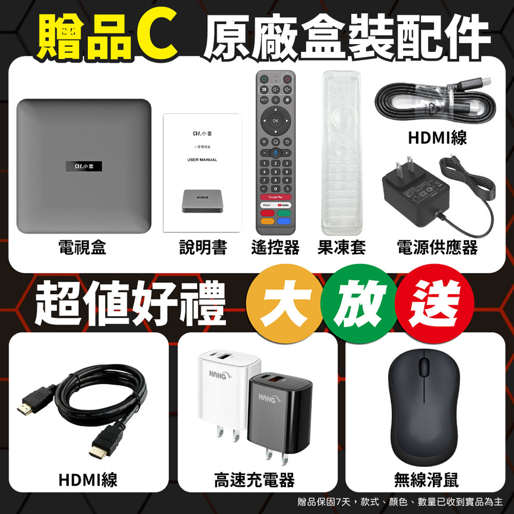 🎁C好禮:小雲盒子10P+(原廠全配)、高速充電頭、無線滑鼠、4K-HDMI線