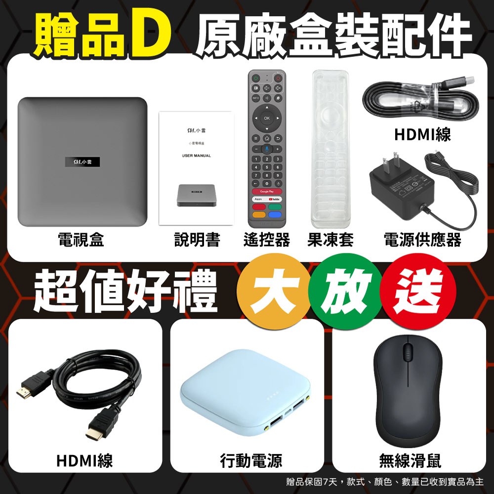 🎁D好禮:小雲盒子10P+(原廠全配)、行動電源、無線滑鼠、4K-HDMI線