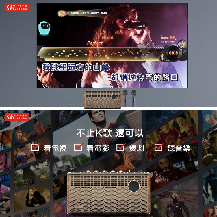 ✅家庭K歌、觀影、藍牙喇叭音響,適用更多場景。