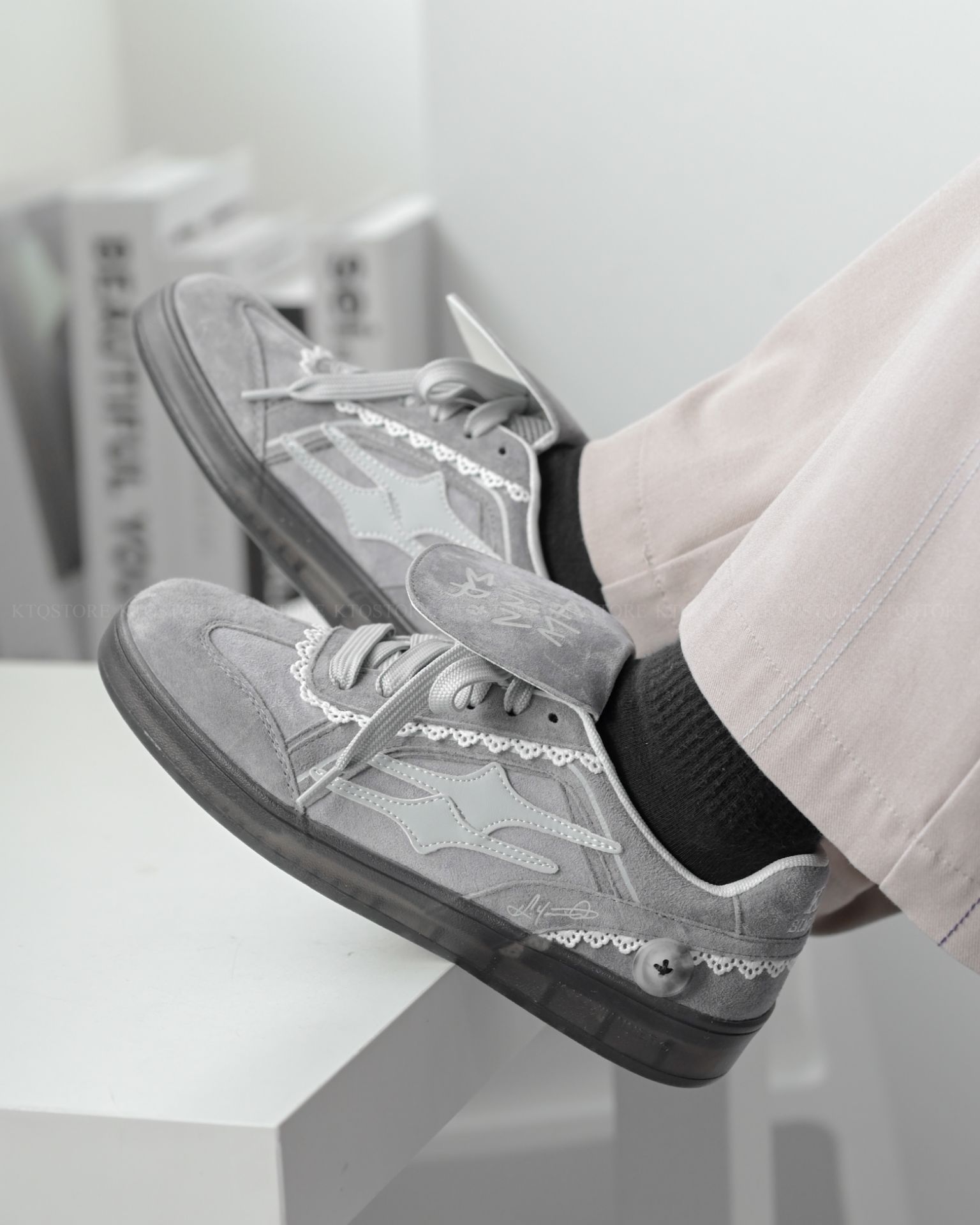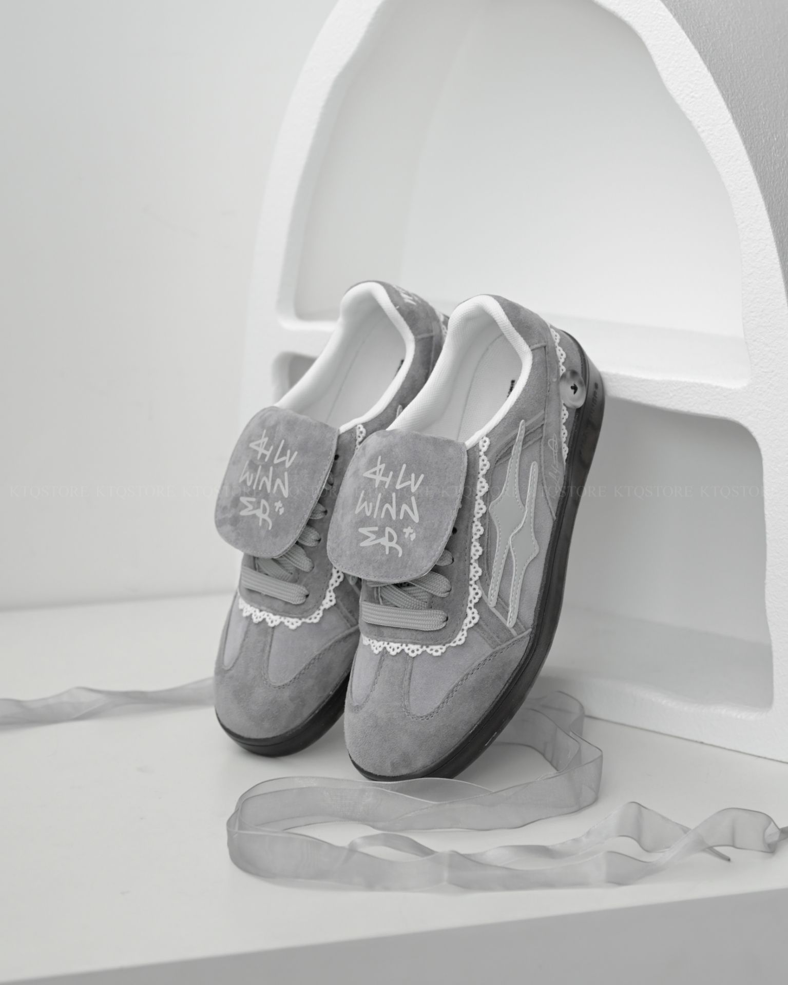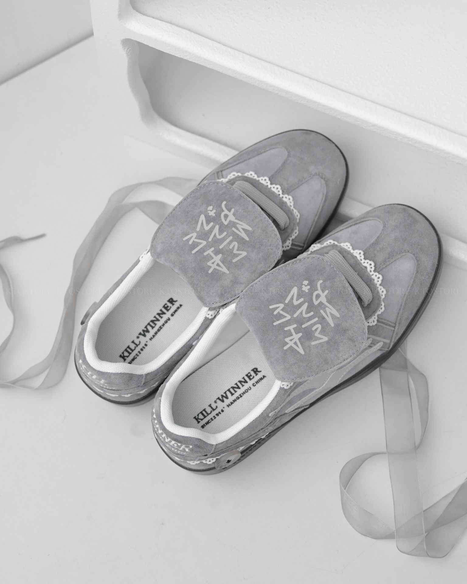 KTQ STORE 現貨+預購 Killwinner 灰蕾絲 德訓鞋 灰白 芭蕾風 張員瑛同款 KWDX240403