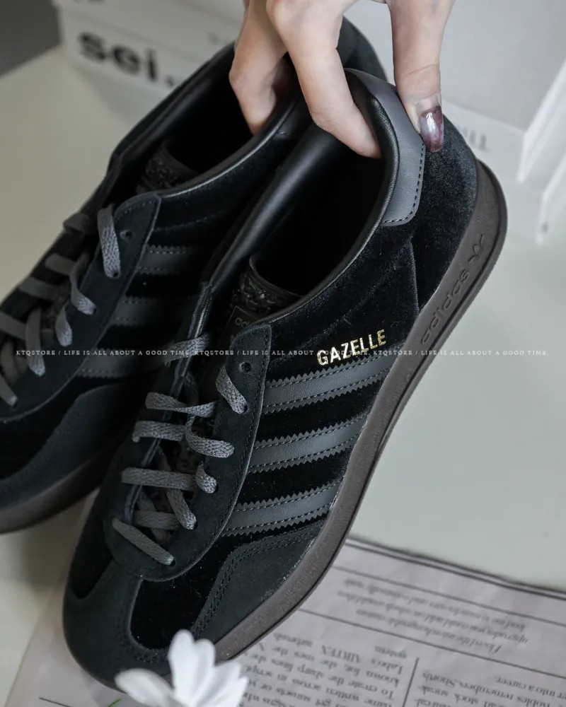 KTQ STORE 現貨 ADIDAS GAZELLE INDOOR 炭黑 灰黑 深灰 焦糖底 天鵝絨 女鞋 JI2712