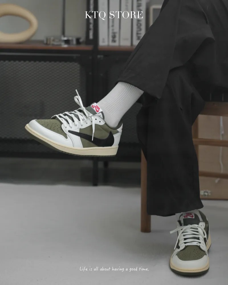 KTQ STORE 現貨 Travis Scott x Nike Air Jordan 1 Low OG 橄欖綠 倒鉤 DM7866-200