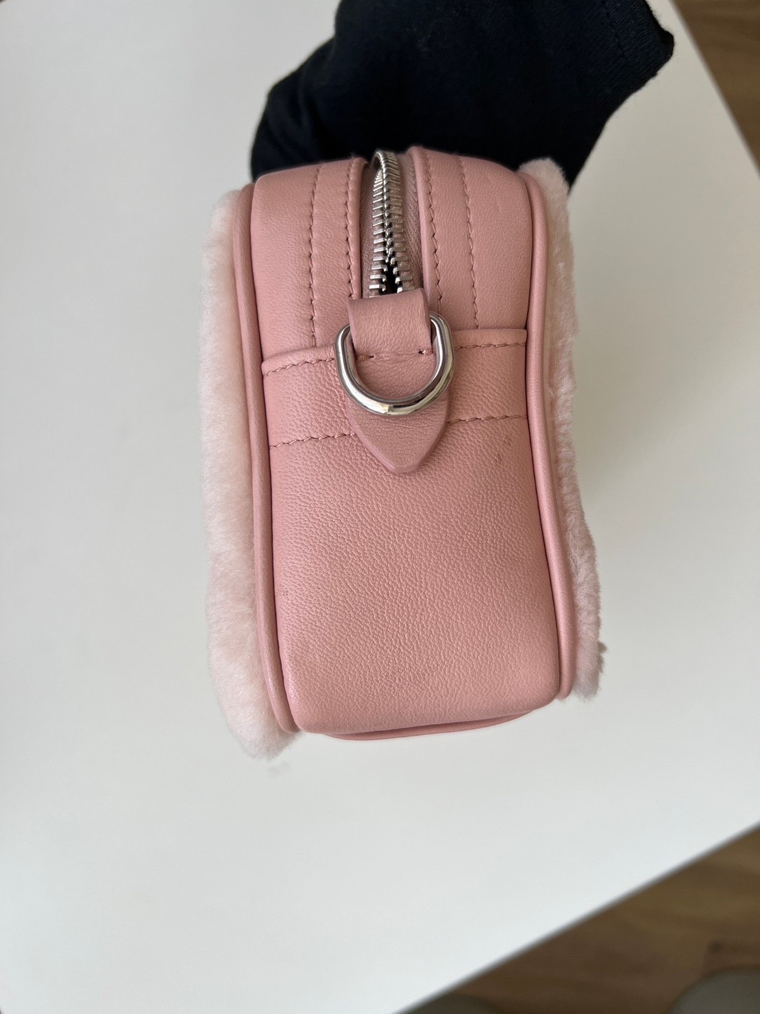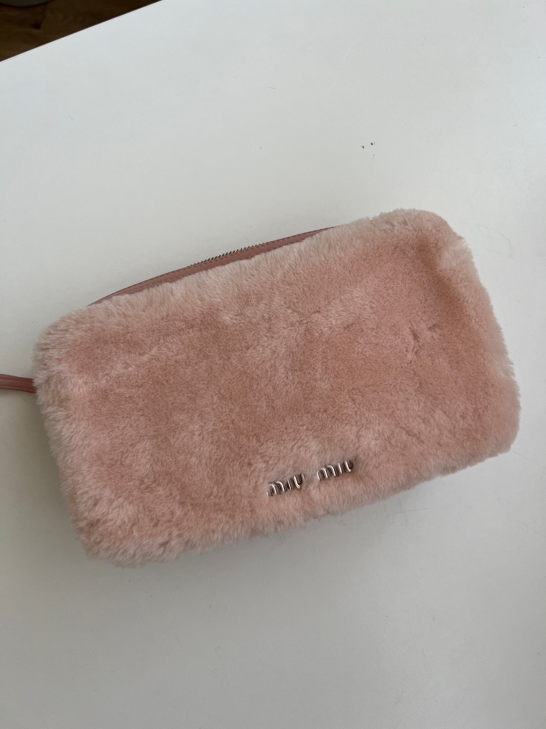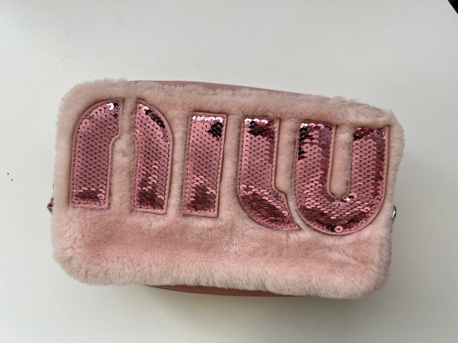 二手Miu Miu 粉色絨毛拉鍊相機包