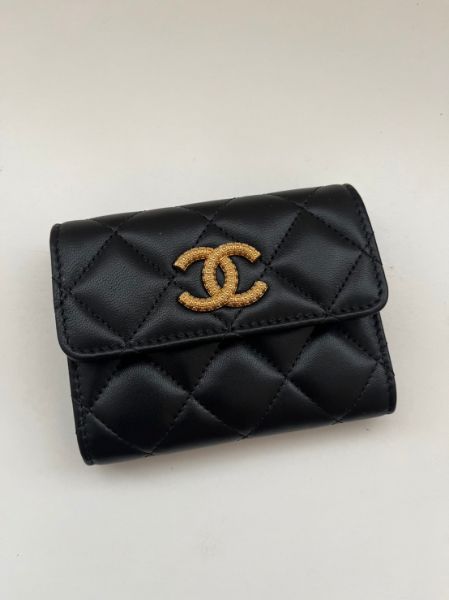 Chanel 雙C Logo 三折卡包 羊皮金釦