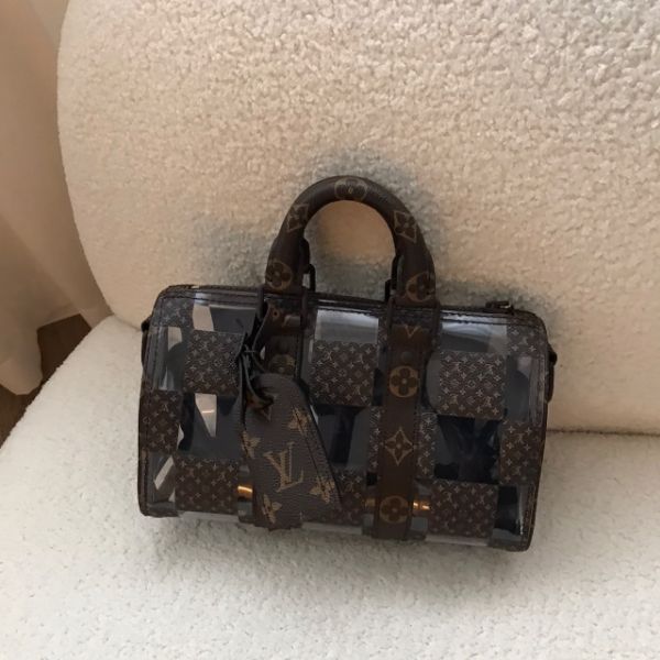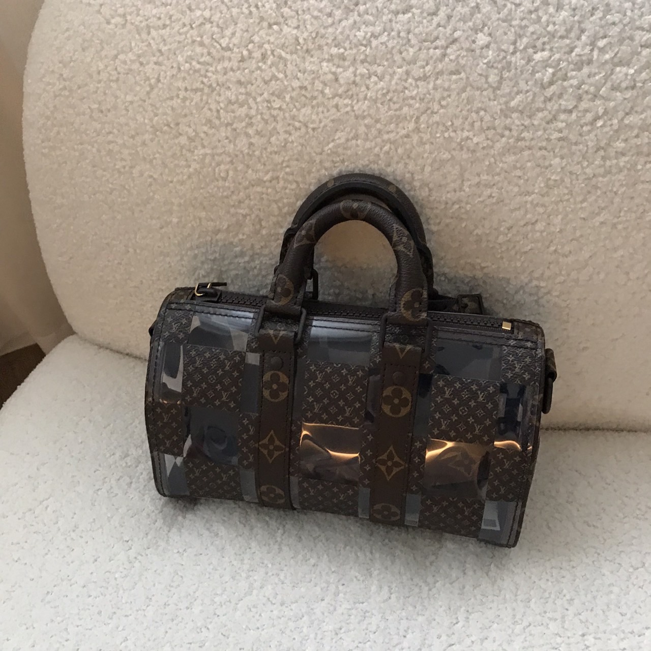 LV Keepall Bandoulière 25老花拼接透明波士頓包 (M20872)